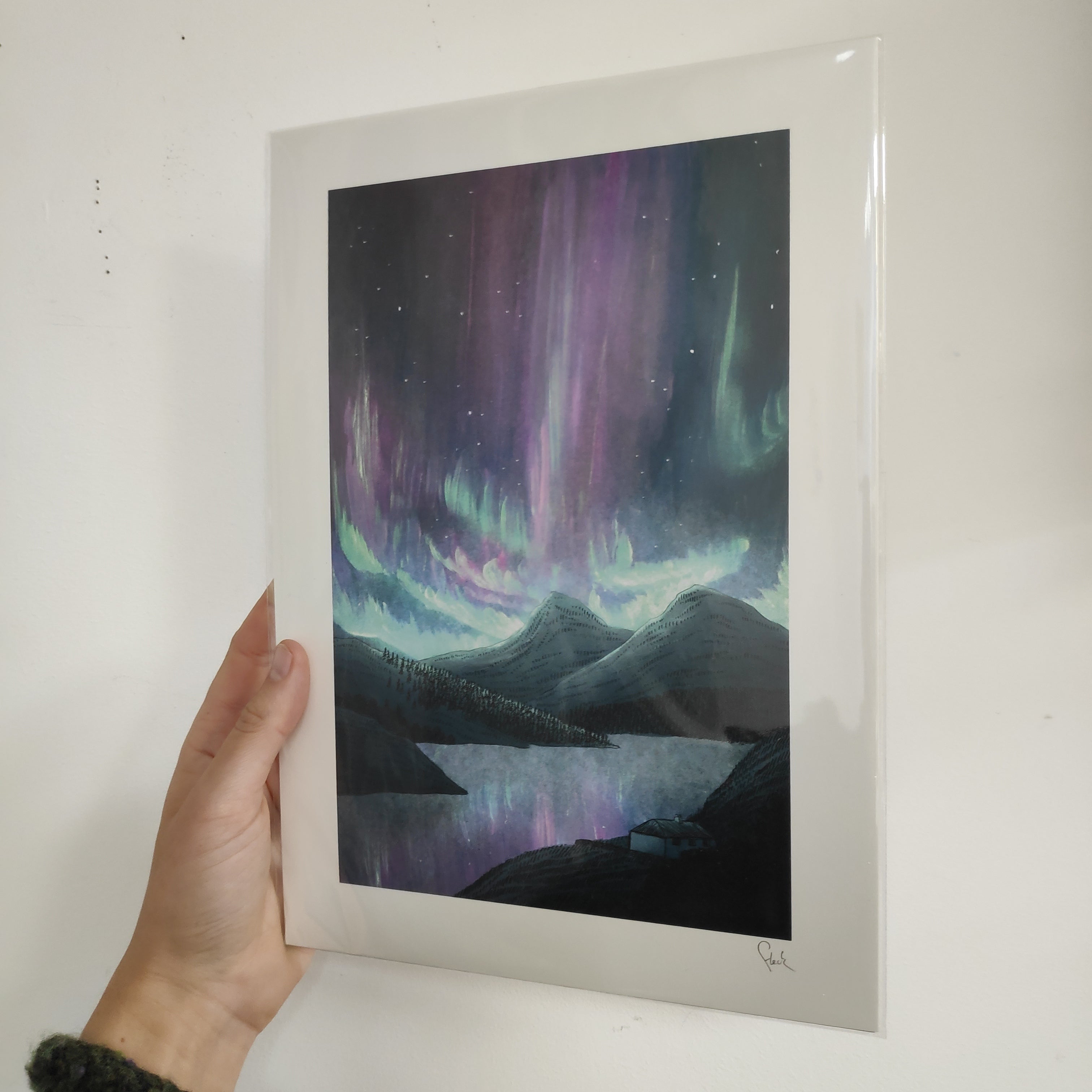 A gorgeous illustrated print of the aurora borealis, or Northern Lights as they are affectionately known, by David Fleck.