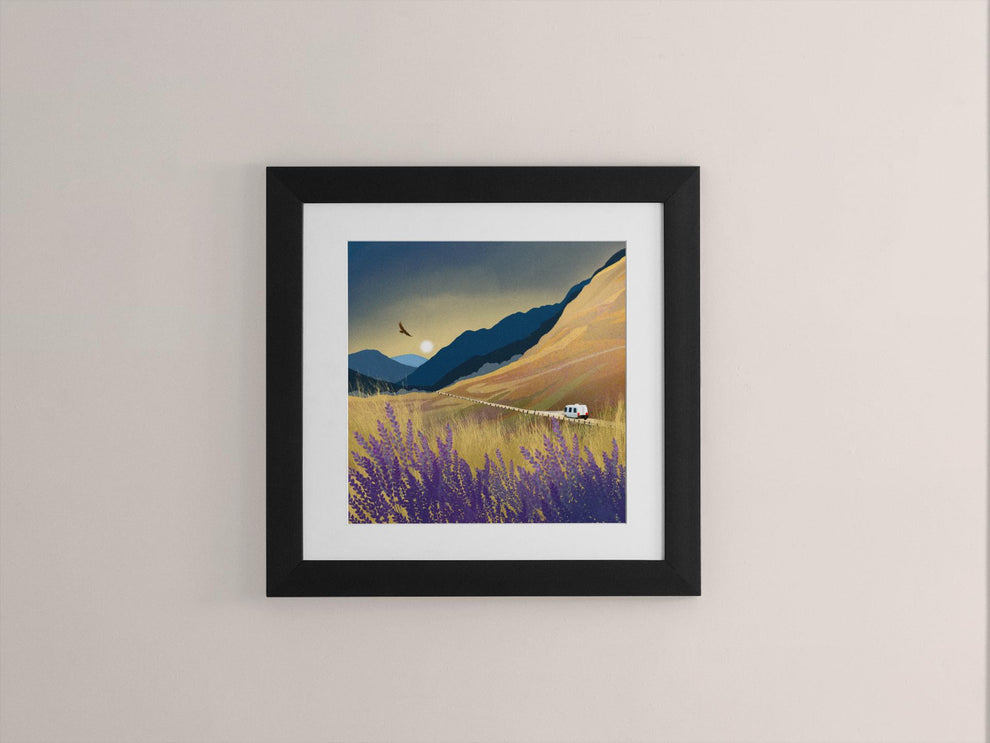 Freedom. Giclee art print of a Motorhome travelling through the Scottish Highlands from an original painting by Caroline Smith.