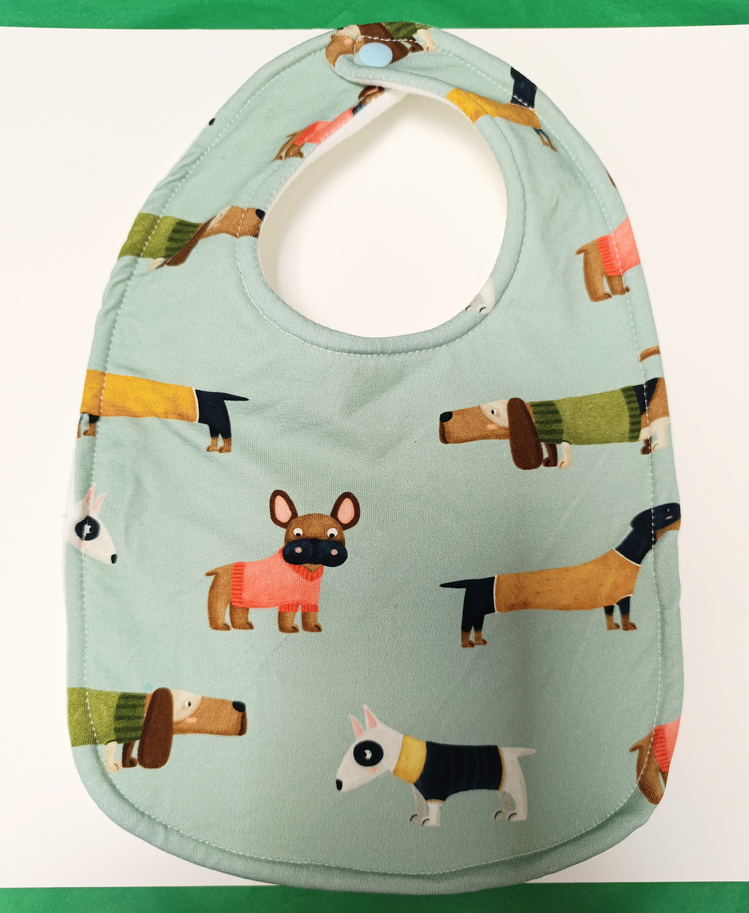 The bibs are all handmade by Vic of Handmade by TeeHeeHee at her home in Glasgow, Scotland.