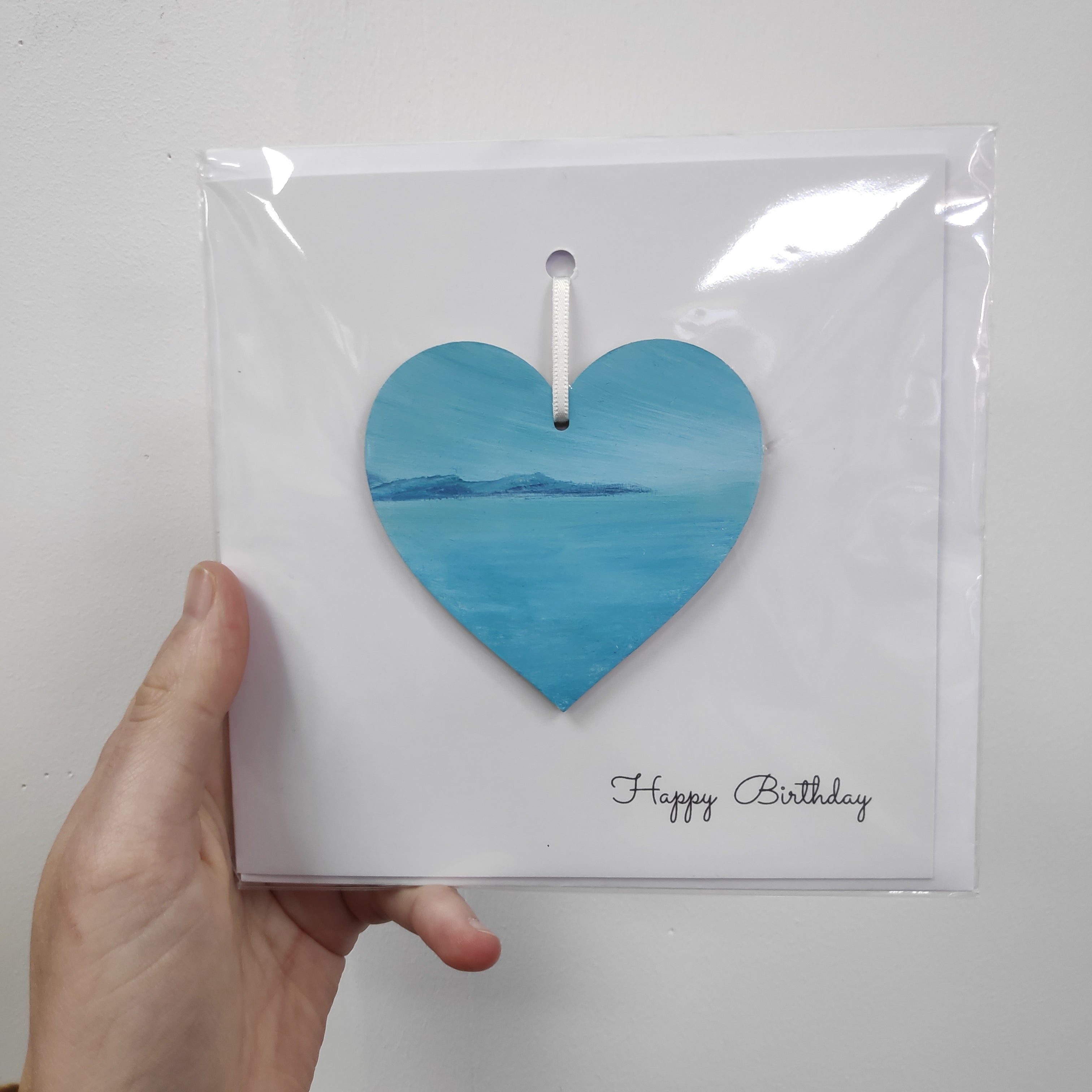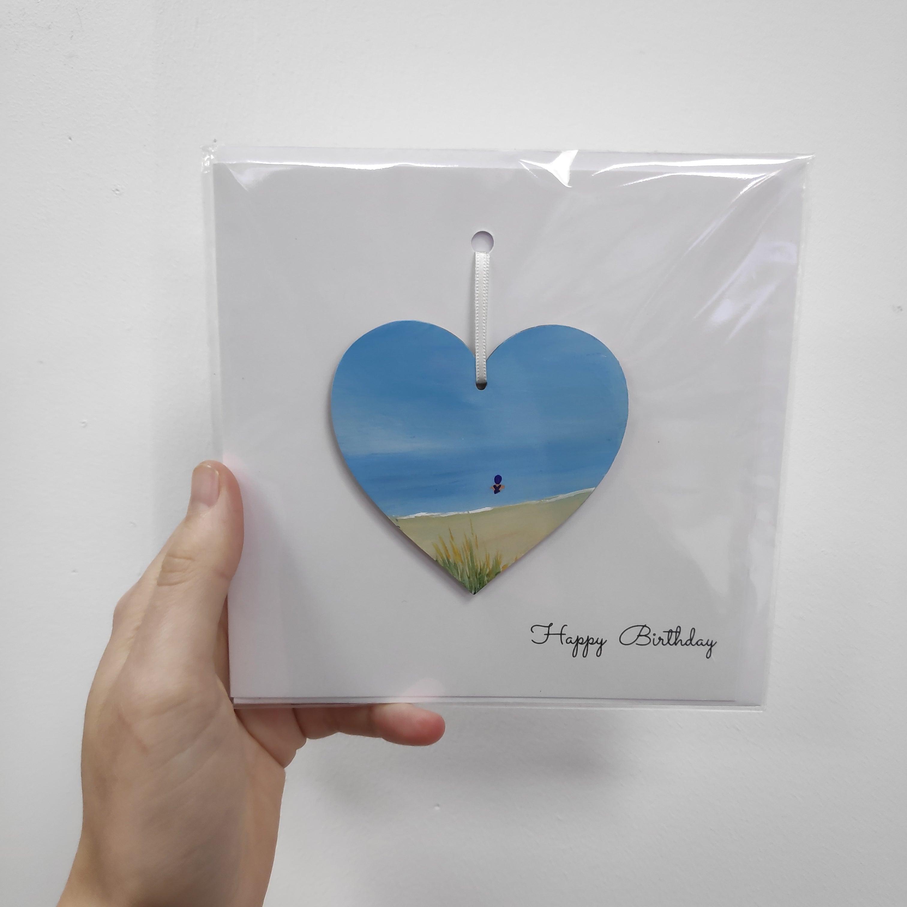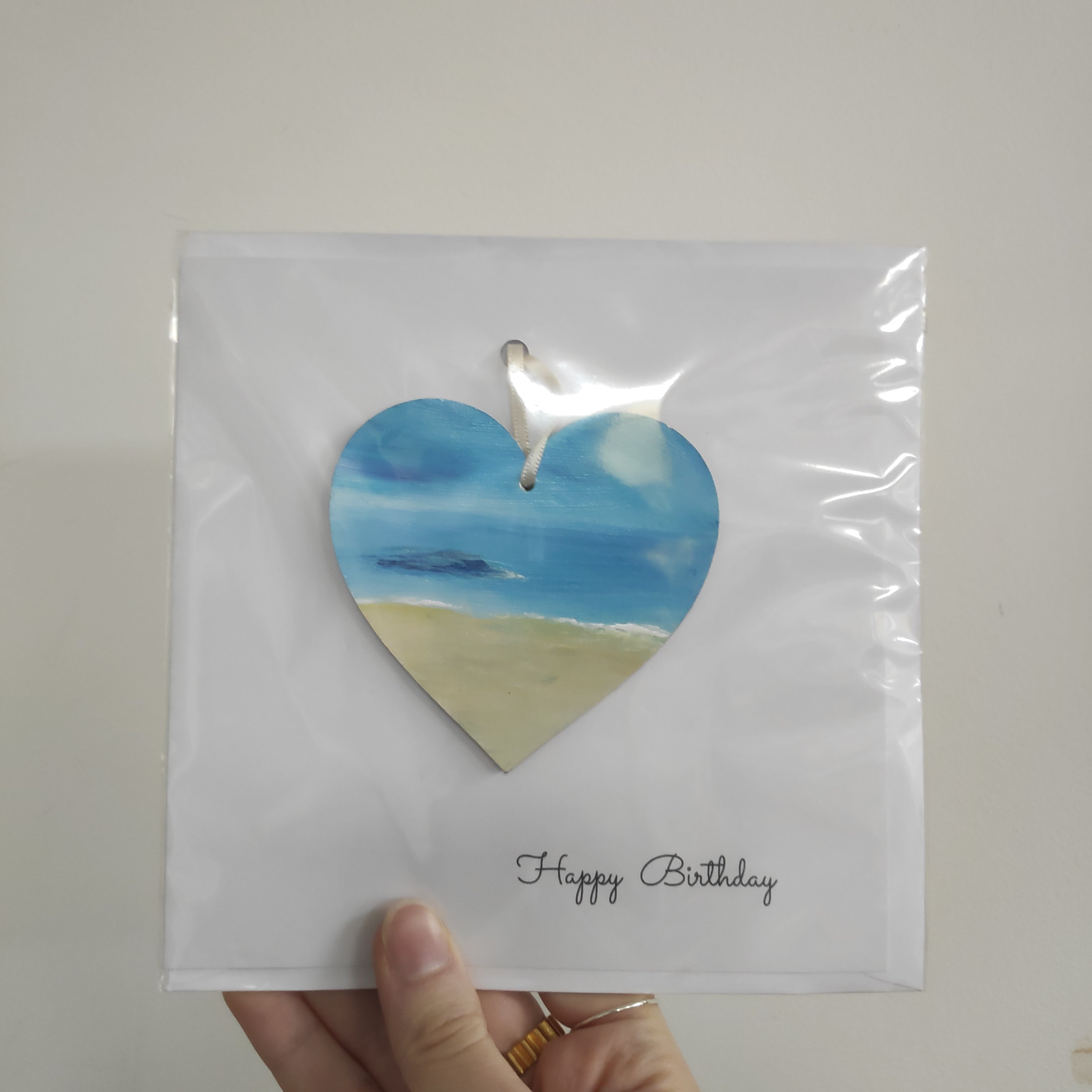 Happy birthday greeting card with ready to hang heart, card blank inside.