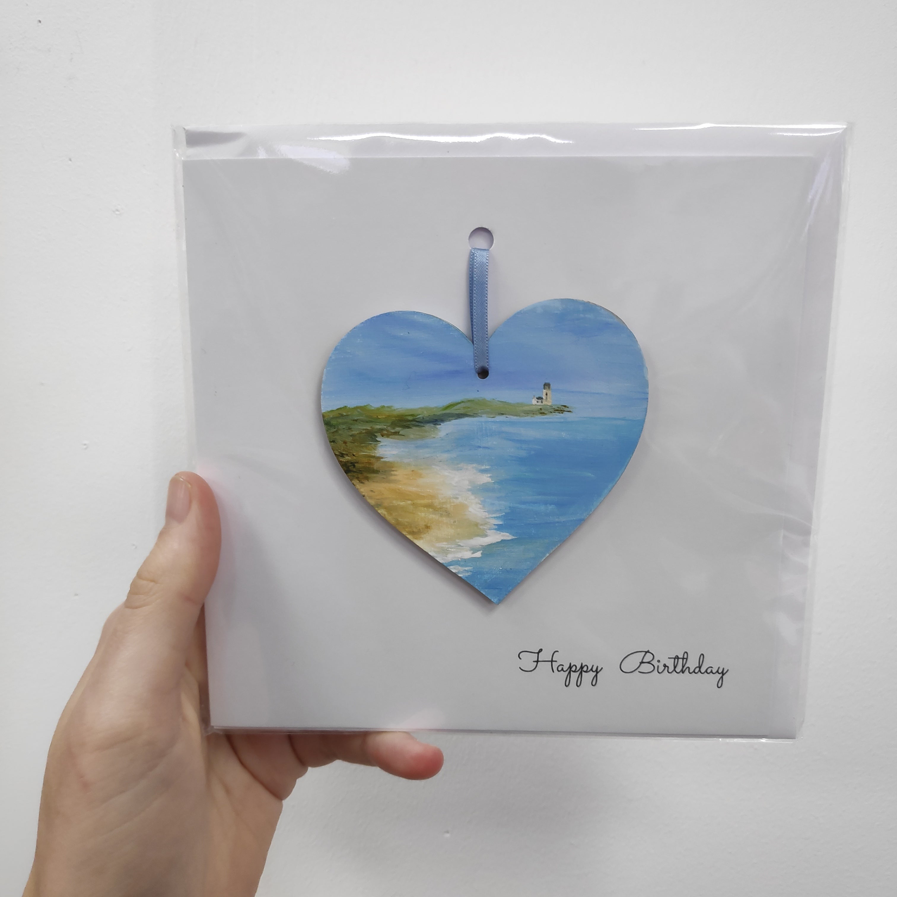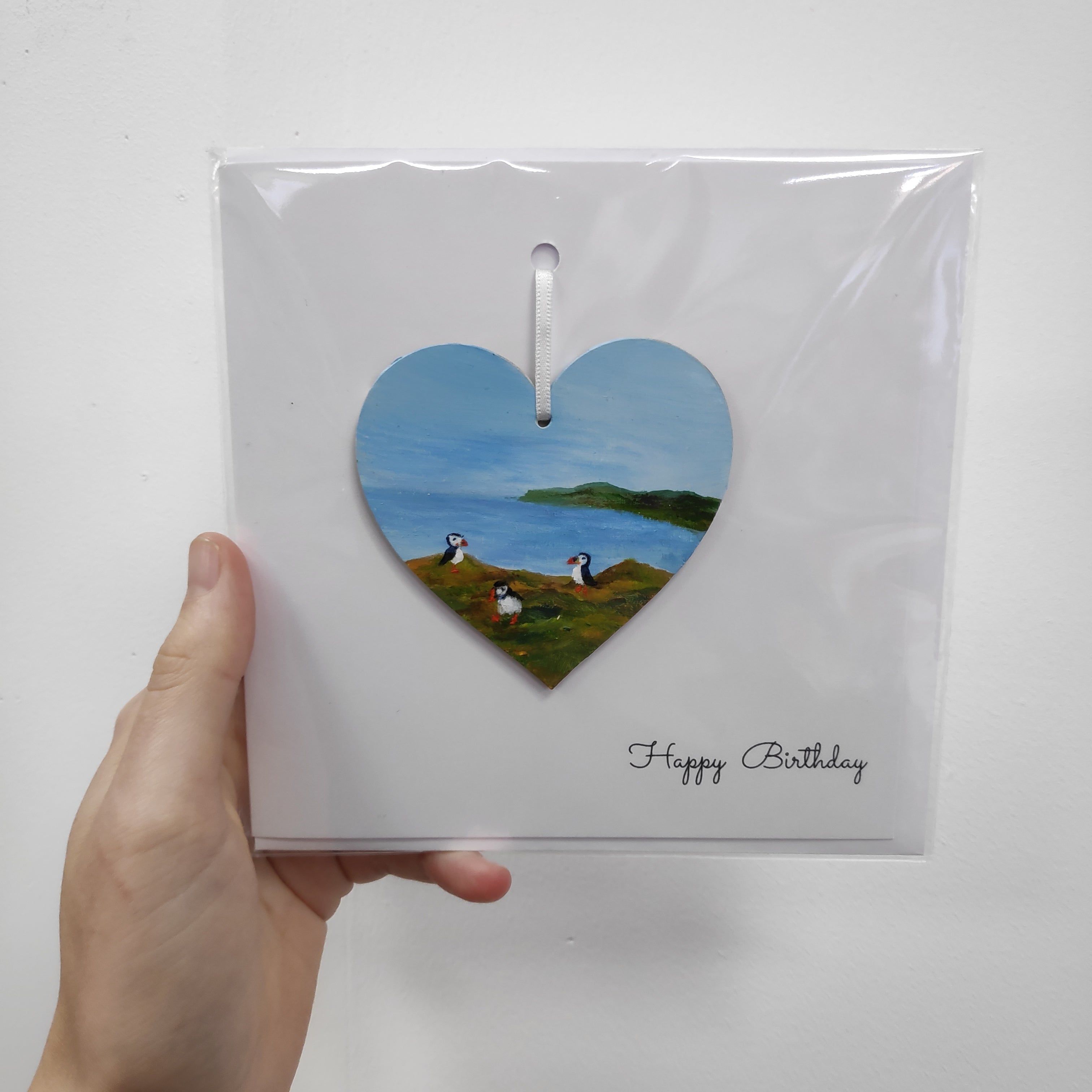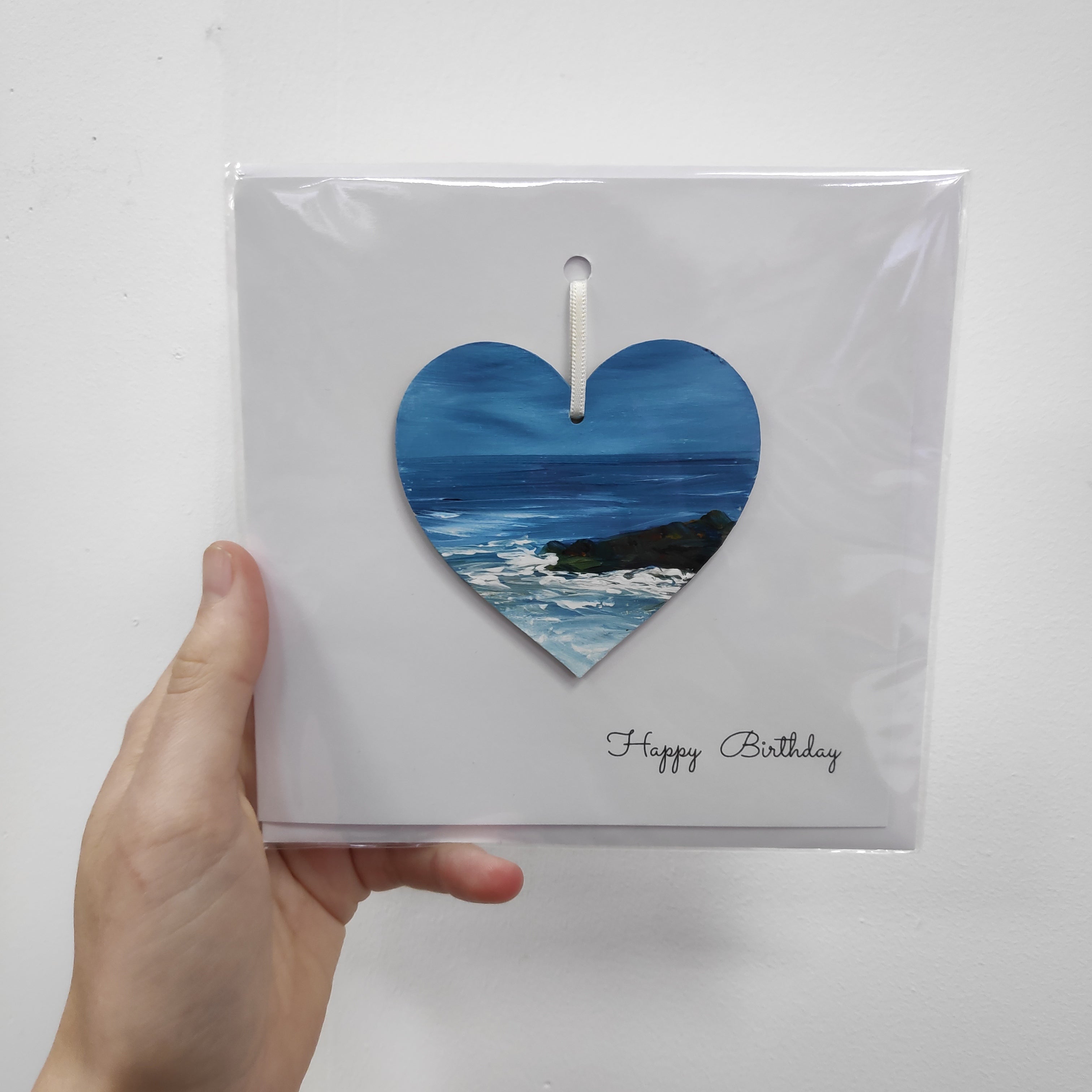 Happy birthday greeting card with ready to hang heart, card blank inside.