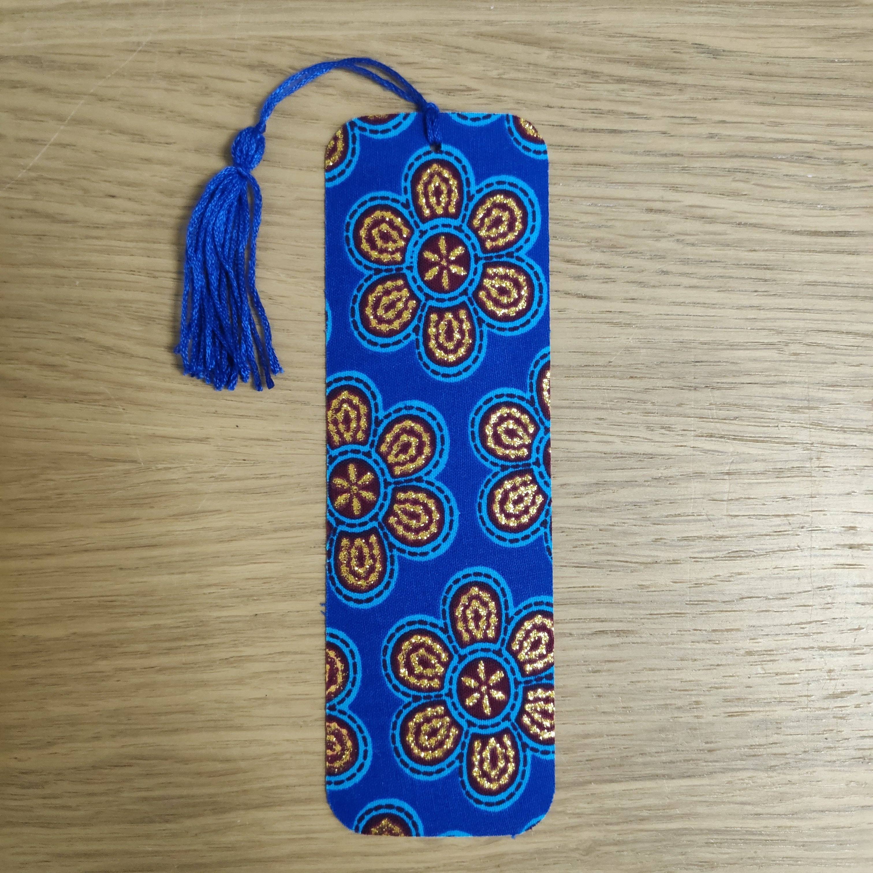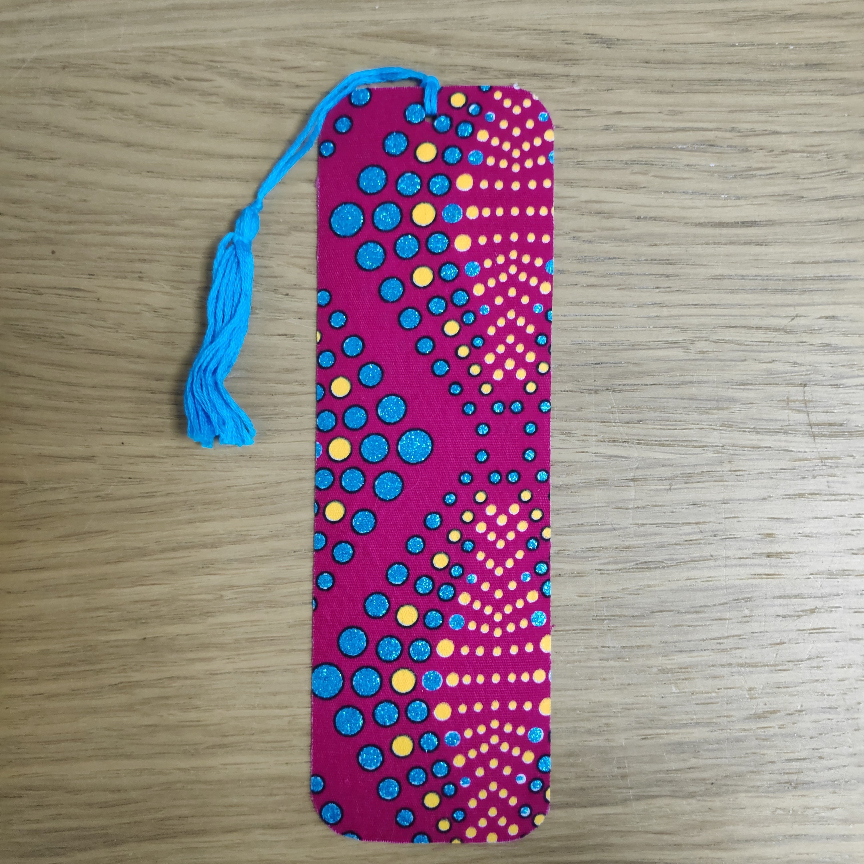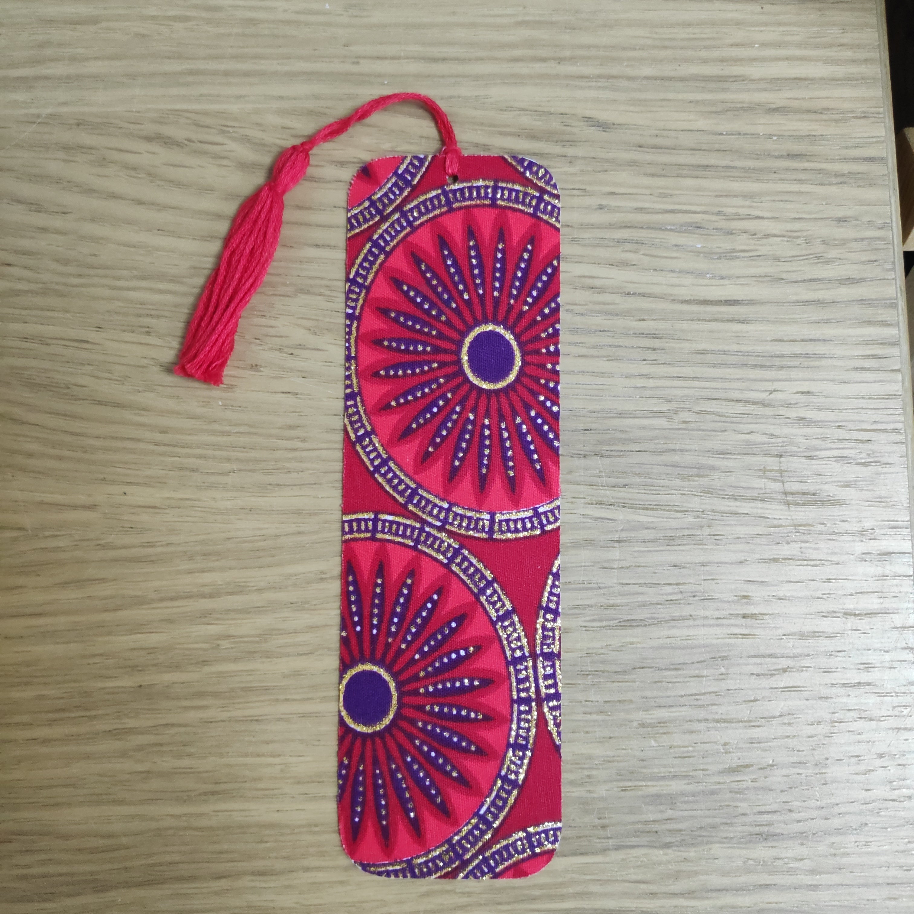 Beautiful bookmarks made from fabric offcuts and recycled threads.