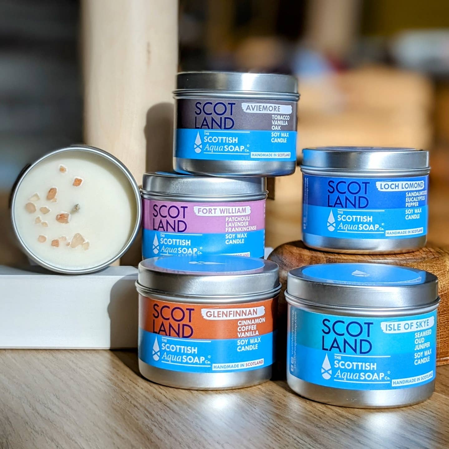 The candles are made with sustainable and non-toxic vegan soy wax, and they are hand poured in Scotland.
