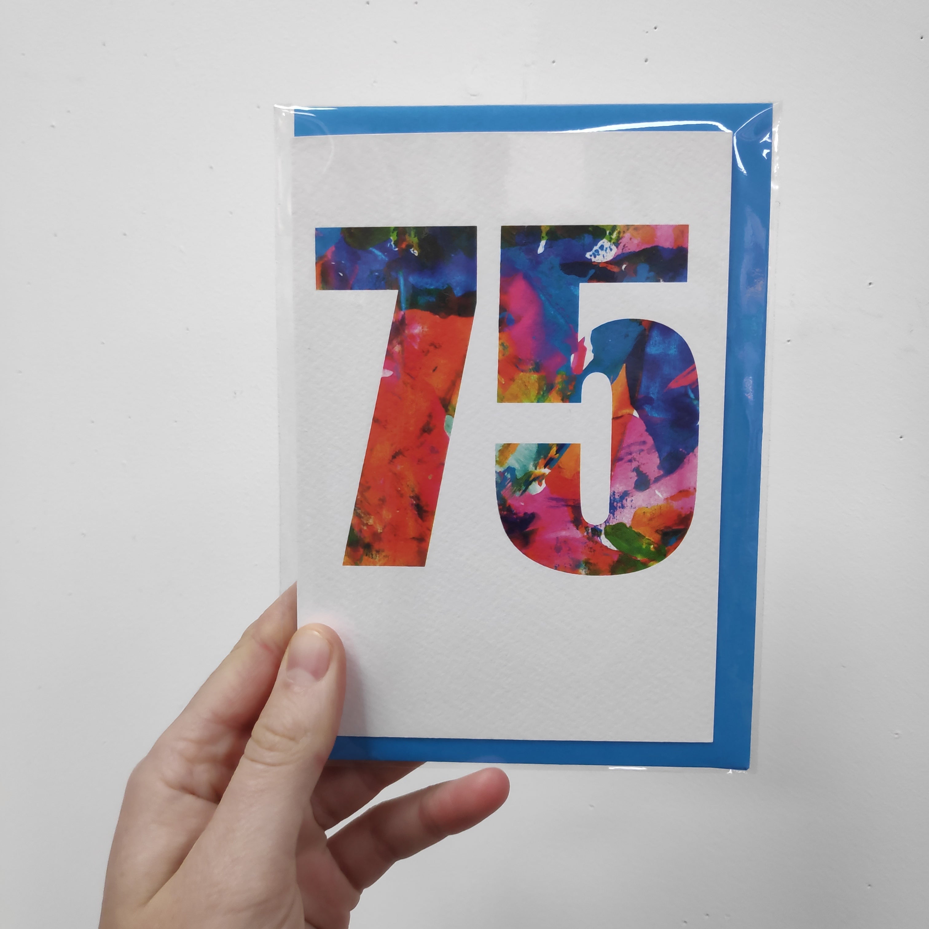75 Card - colourful and fun card from Coatbridge based Karen of size3art. Can be used for a 90th birthday or anniversary.