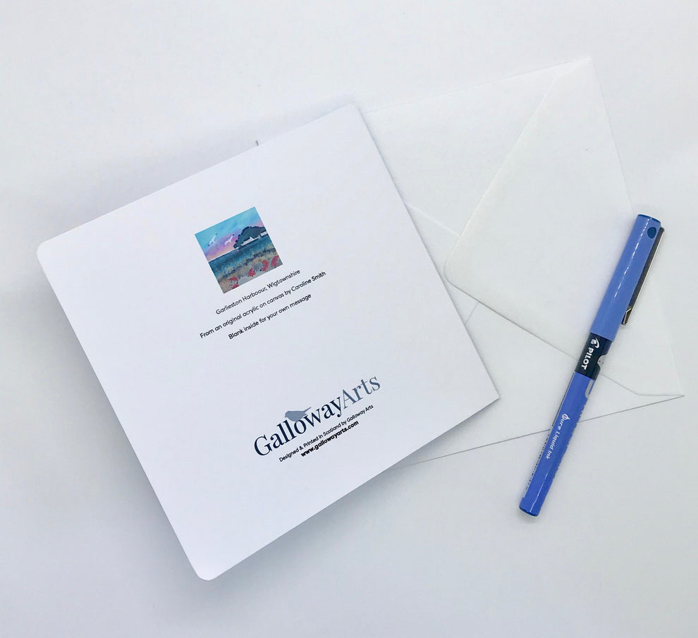 Individually printed greetings card of Garlieston Harbour, Wigtownshire greetings card from an original painting by Caroline Smith.