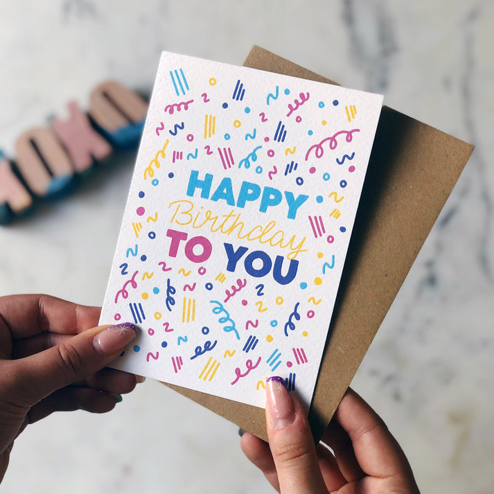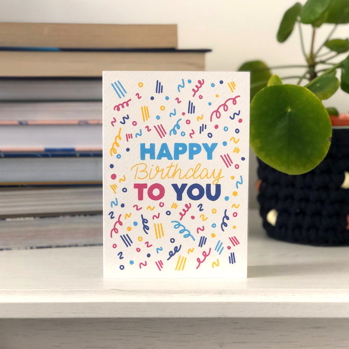 Celebrate a birthday with this colourful card from local artist, XOXO Designs by Ruth.