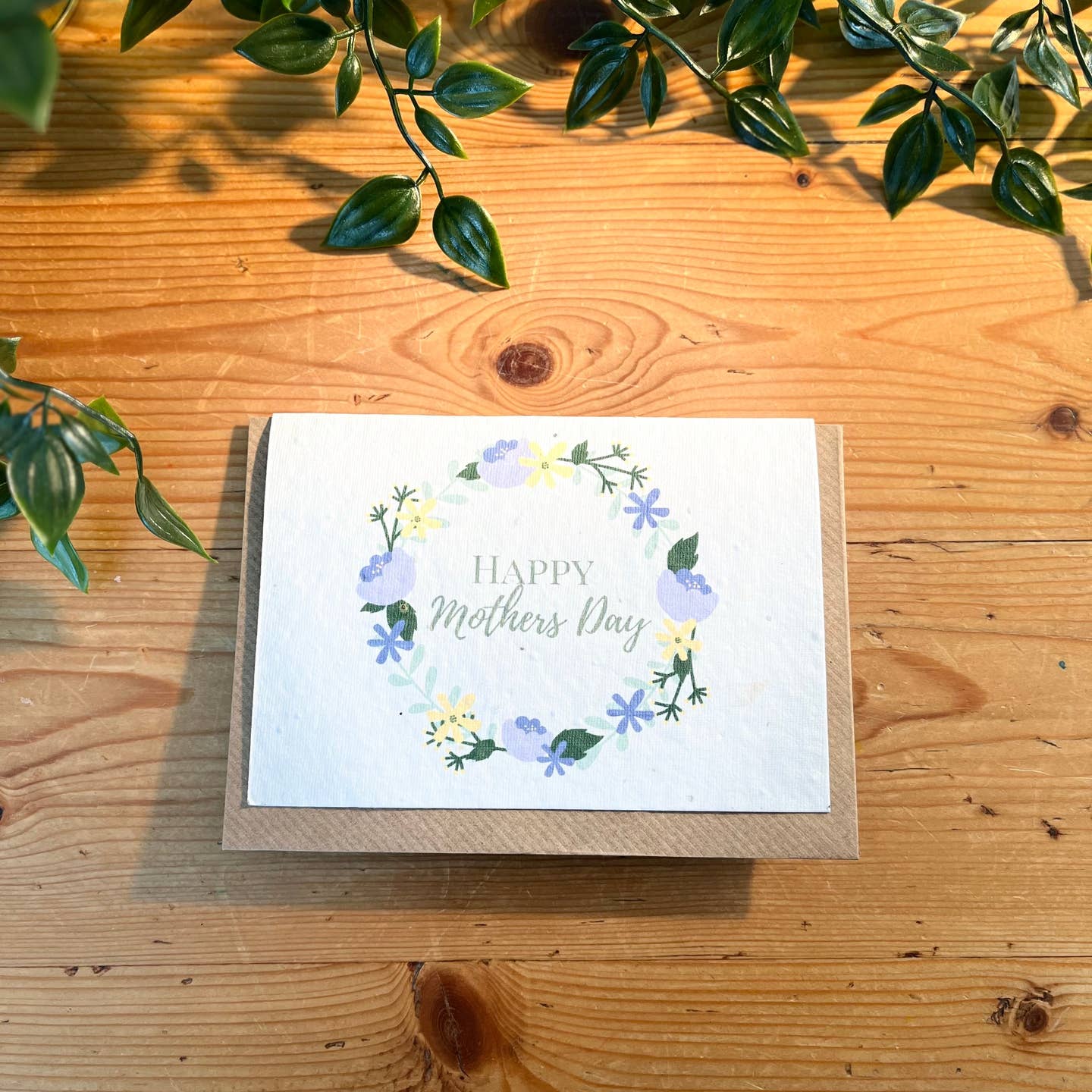 Handmade, packed full of bee-friendly flower seeds and made from 100% Pre-consumer recycled cotton" + kraft paper envelope and compostable sleeve.