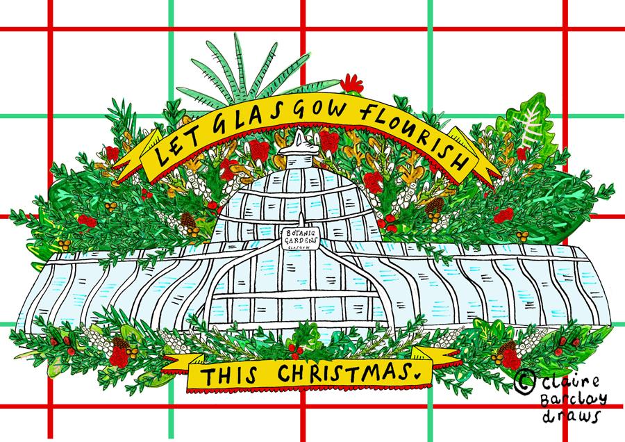 'Let Glasgow Flourish this Christmas' Xmas greetings card, festive florals have taken over the Kibble Palace at Glasgow's Botanic Gardens!