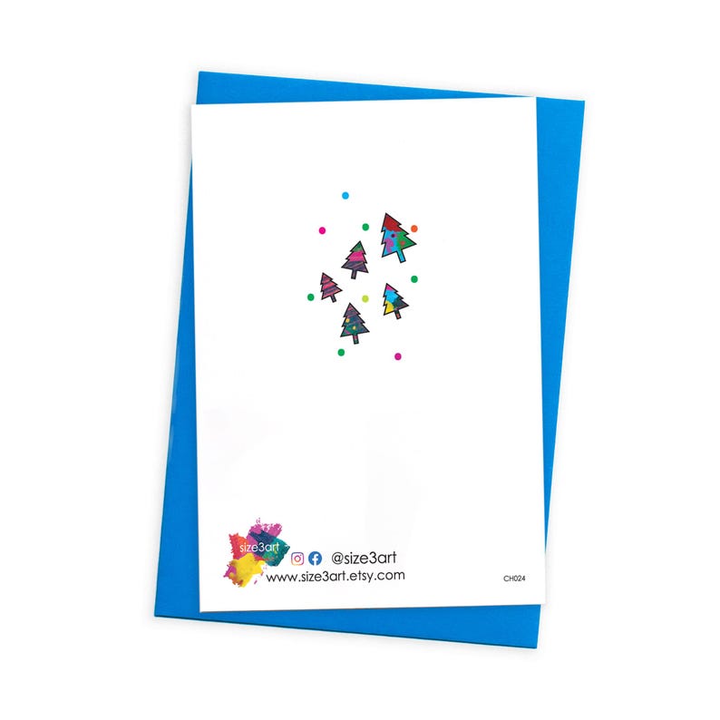 A bright and cheerful card with colourful Christmas trees to wish a very merry Christmas to an amazing son.