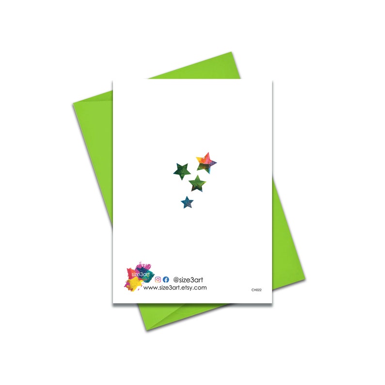 A bright and cheerful Christmas card full of colourful stars from Coatbridge based size3art.