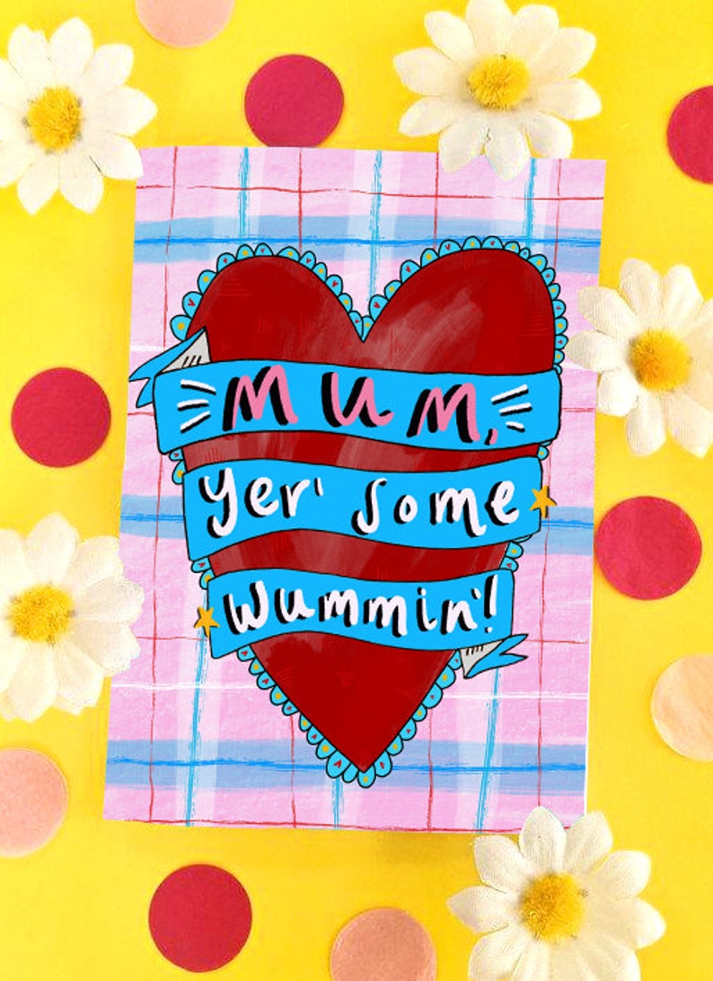 'Mum yer some wummin'! greetings card a celebration of awesome Mums, love, and some of Scotland's fun slang!