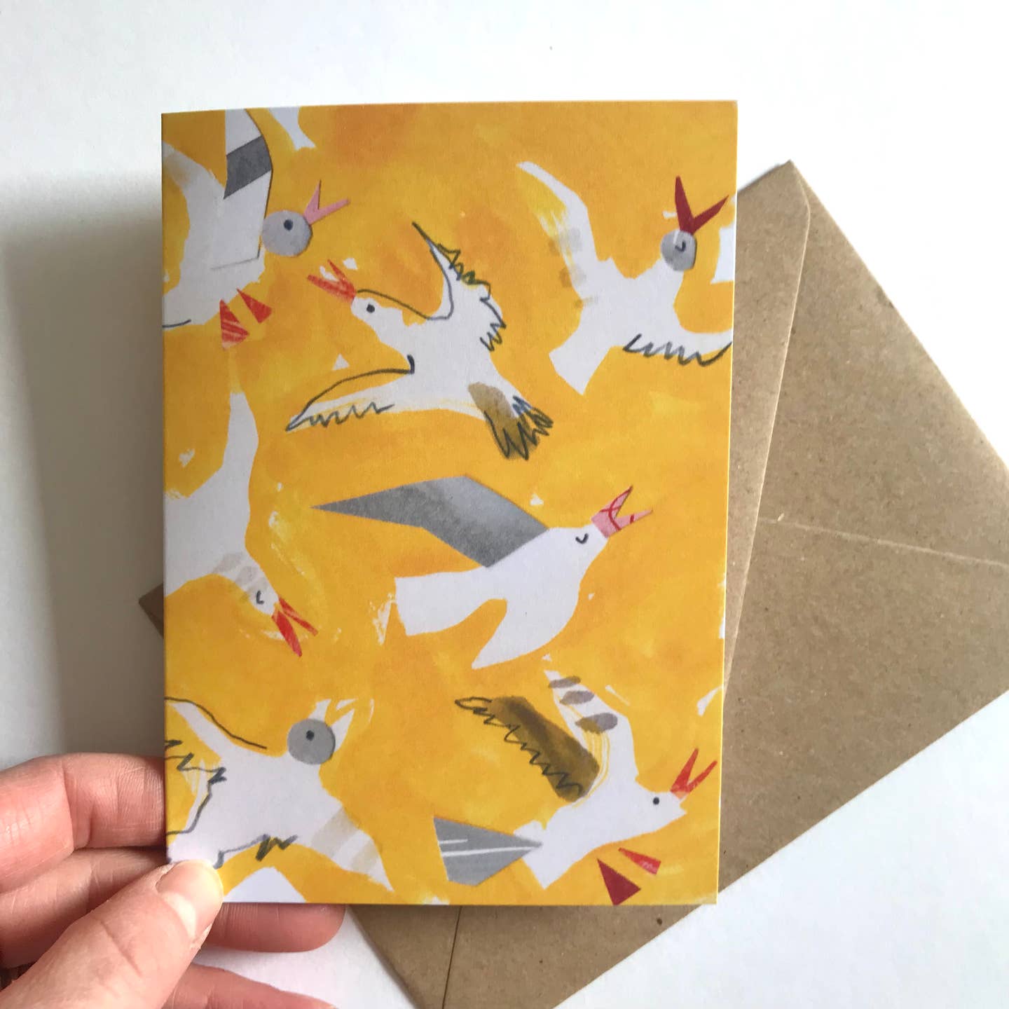 The Sunny Gulls card comes with a recycled brown kraft envelope and is blank inside for your own personal message