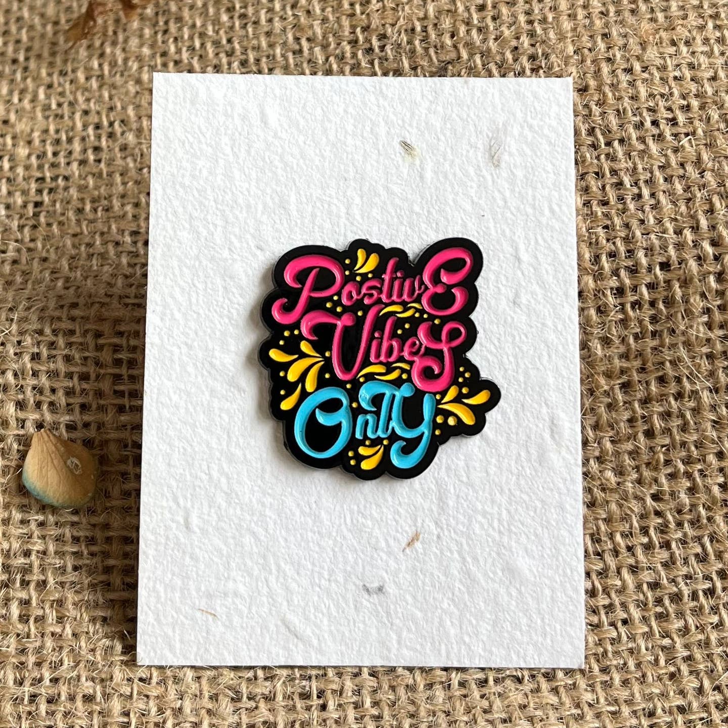 Enamel pins displayed on plantable wildflower seed paper – a thoughtful gift that grows, by Scribe and Grow.