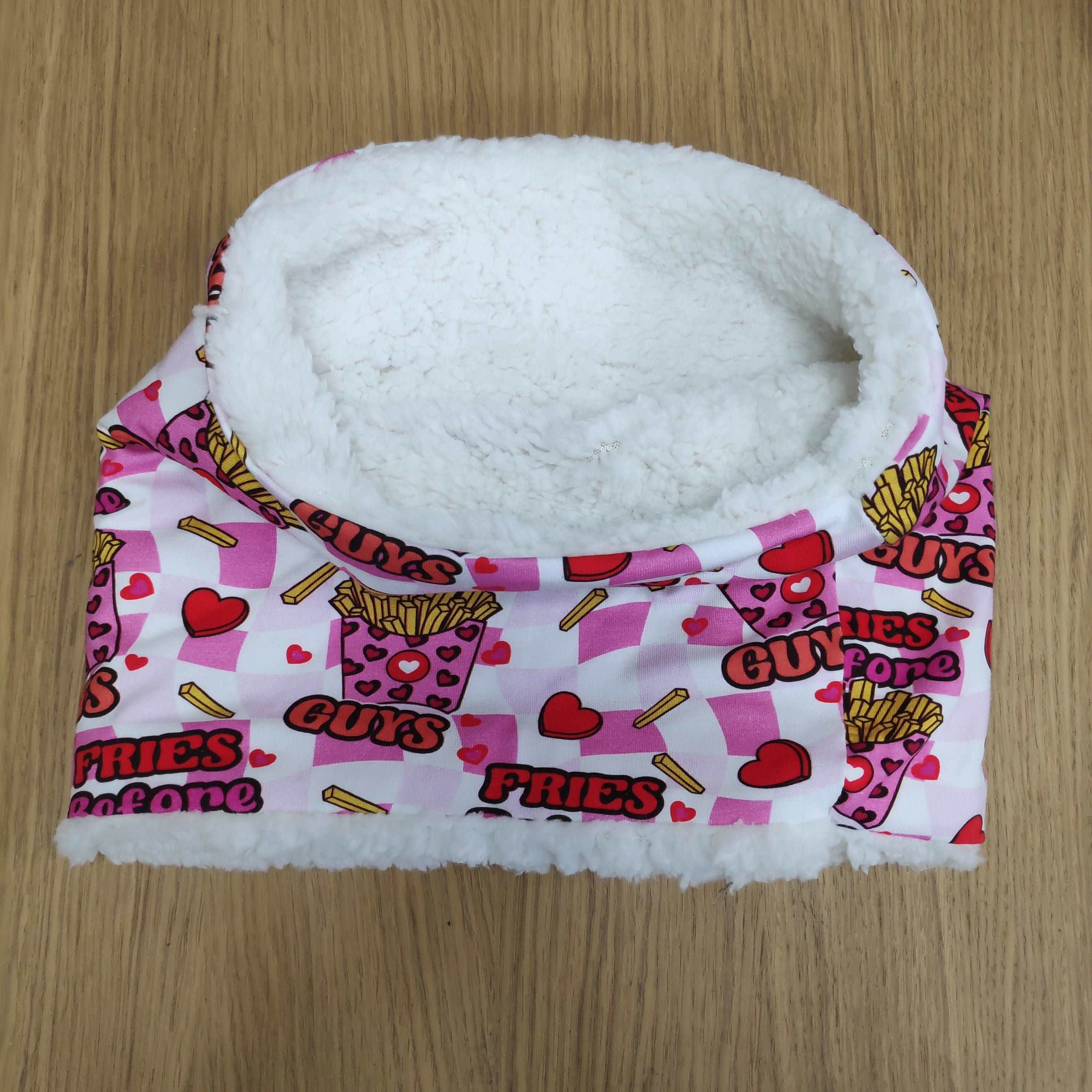 Made from cotton jersey and sherpa microfleece fabric the neck warmers have 2 layers to keep you toasty and warm