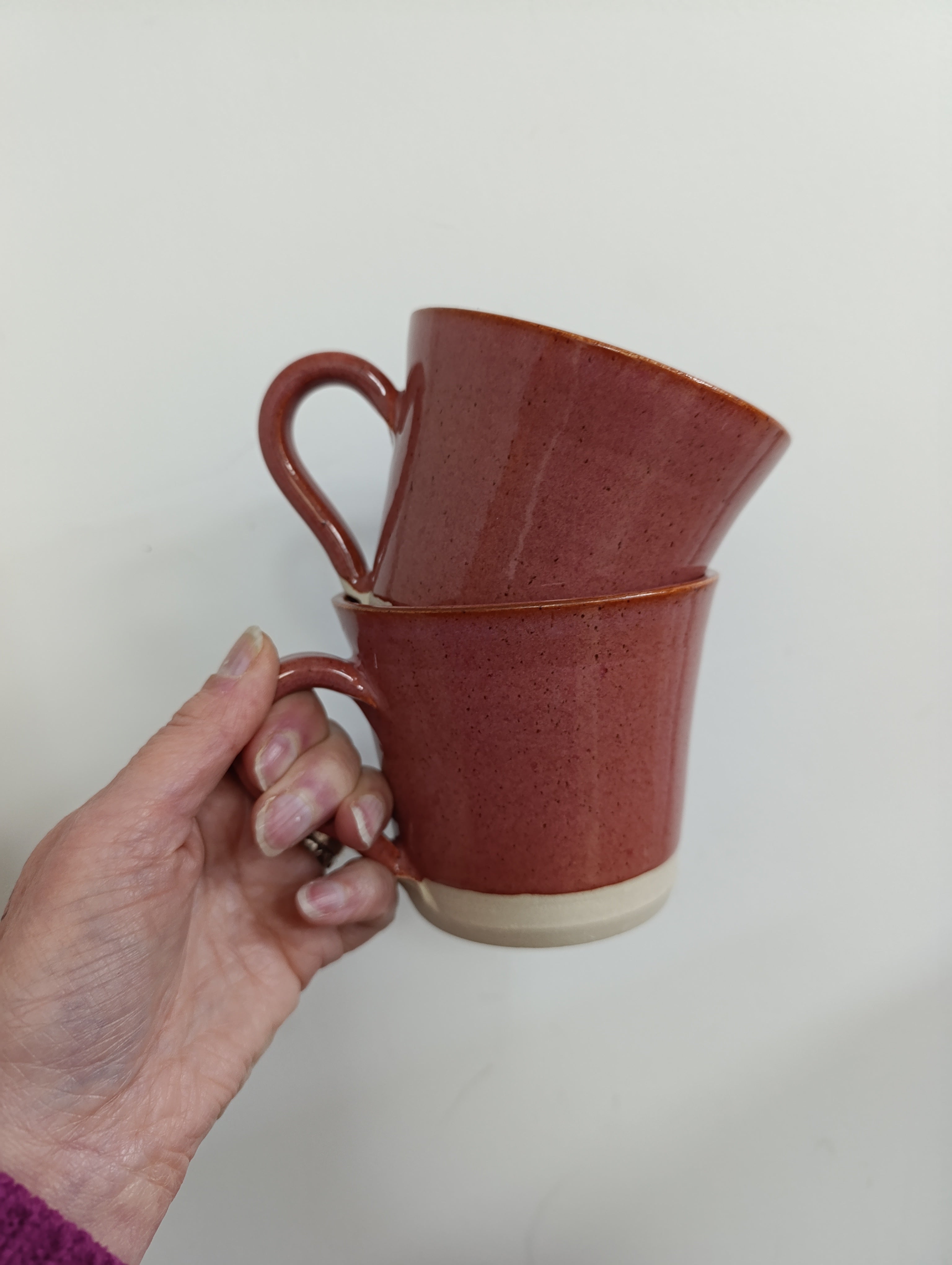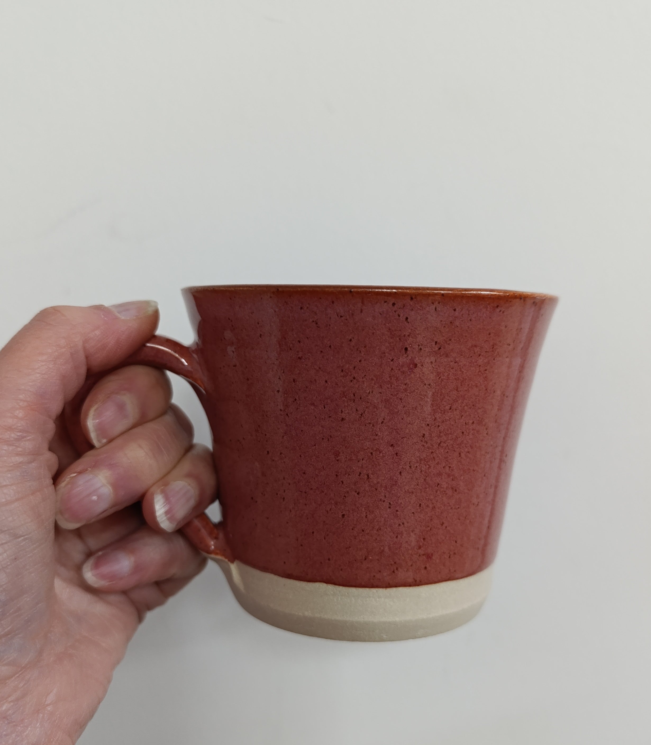 Hand thrown large brick pink glaze mug