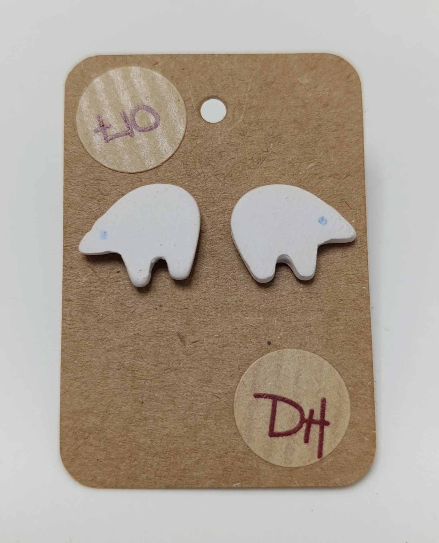 Cute ceramic polar bear stud earrings from Kilcreggan based Helen of Driftwood Harp.