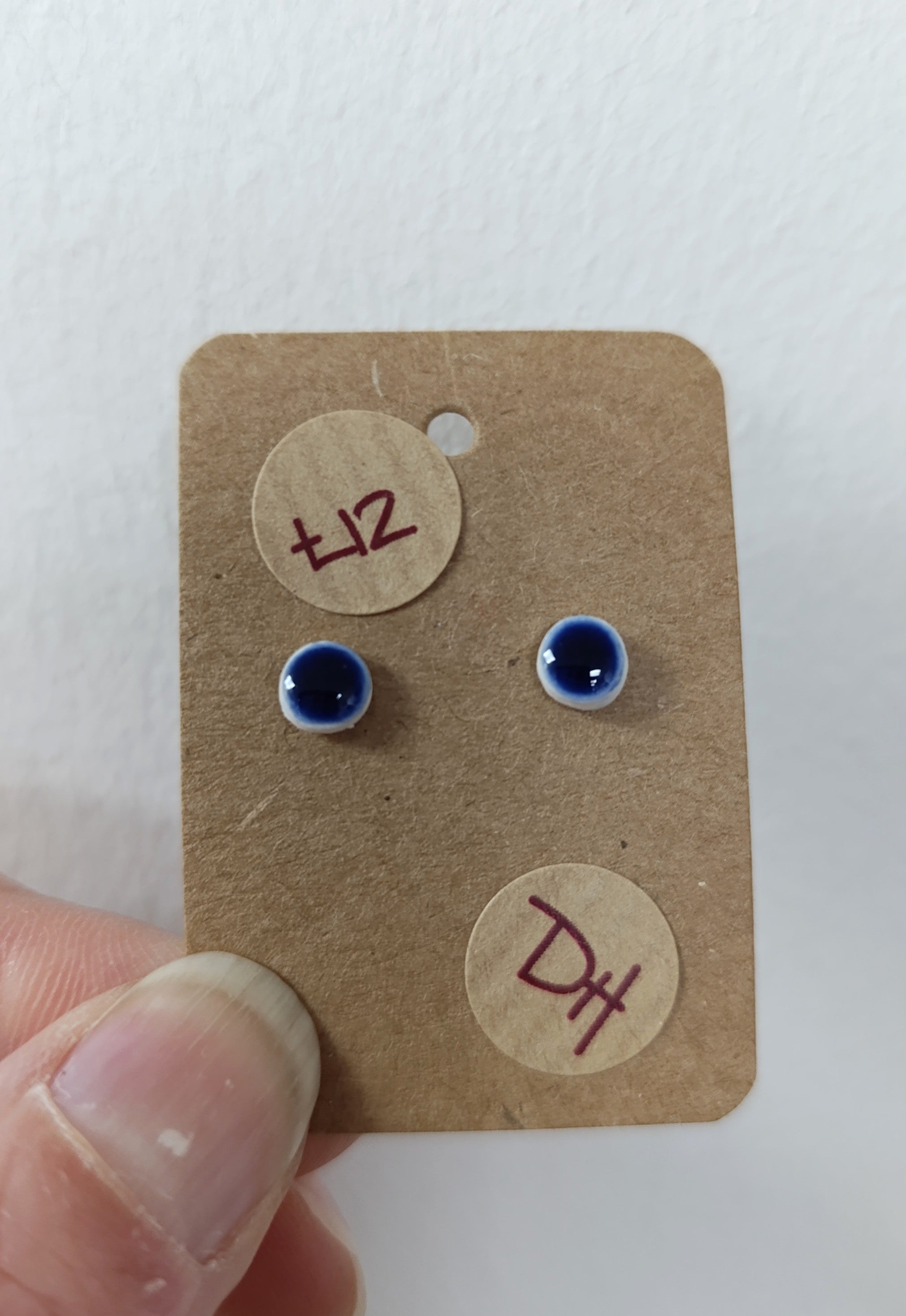 Round ceramic stud earrings from Kilcreggan based Helen of Driftwood Harp.