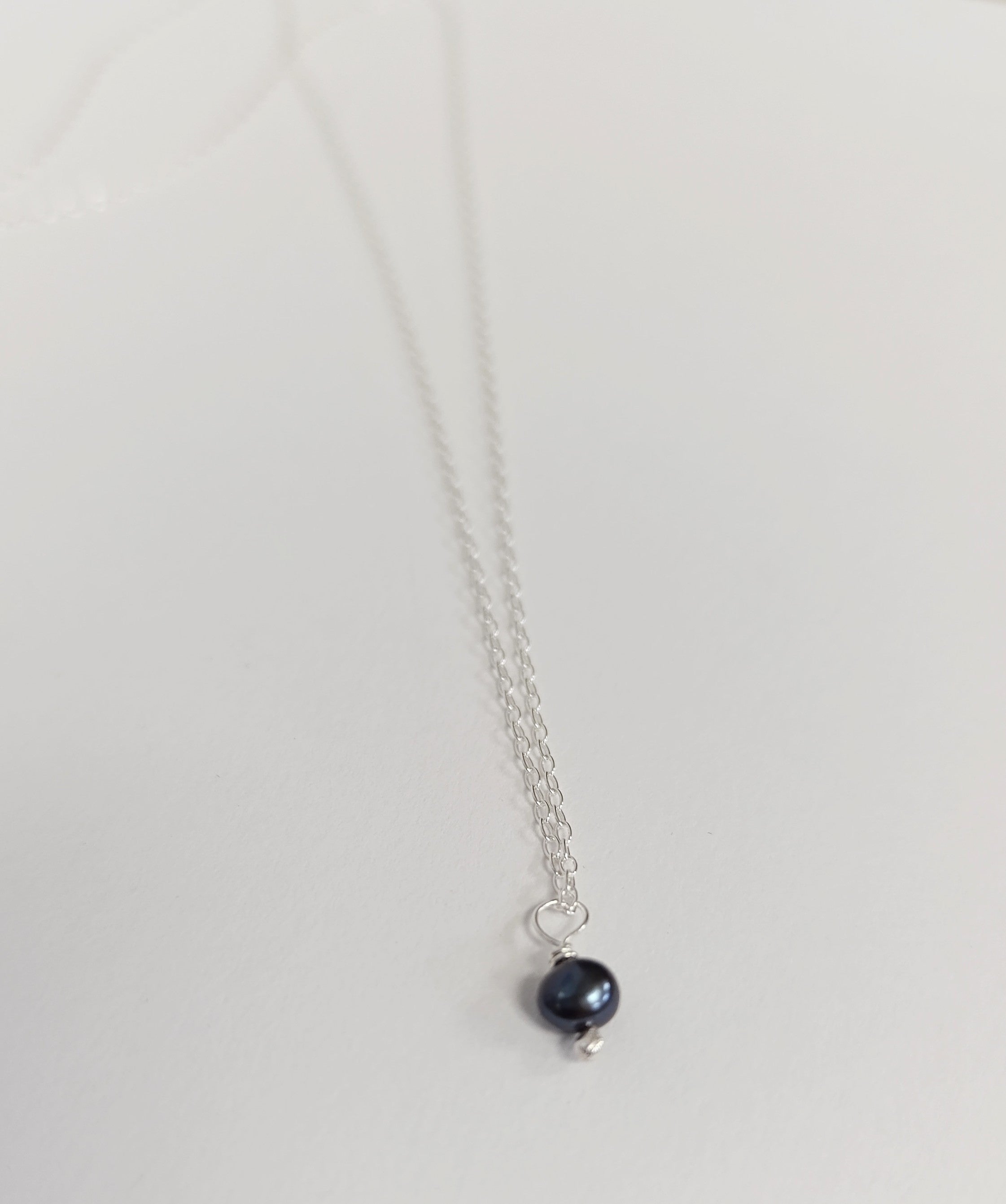 Dinky little peacock freshwater Pearl dropped from a fine 18” chain. Little pearl, gorgeous colour - big impact! Easy to wear everyday!