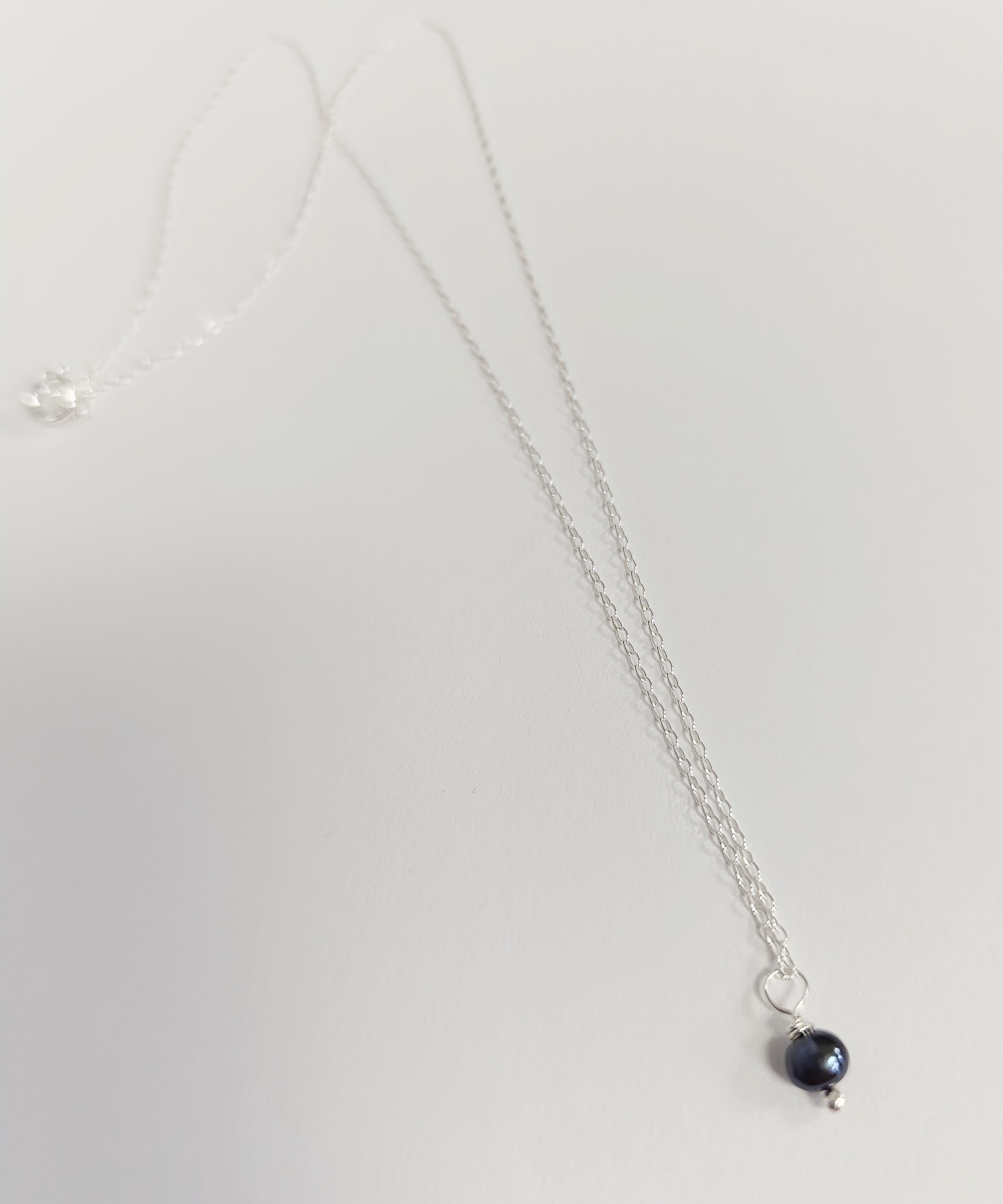 * Please also note - on the necklace we have in stock the pearl hangs directly from the necklace, without the 2 jump rings *