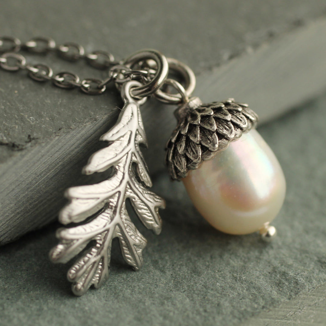 Freshwater Pearl Acorn with Oak Leaf necklace