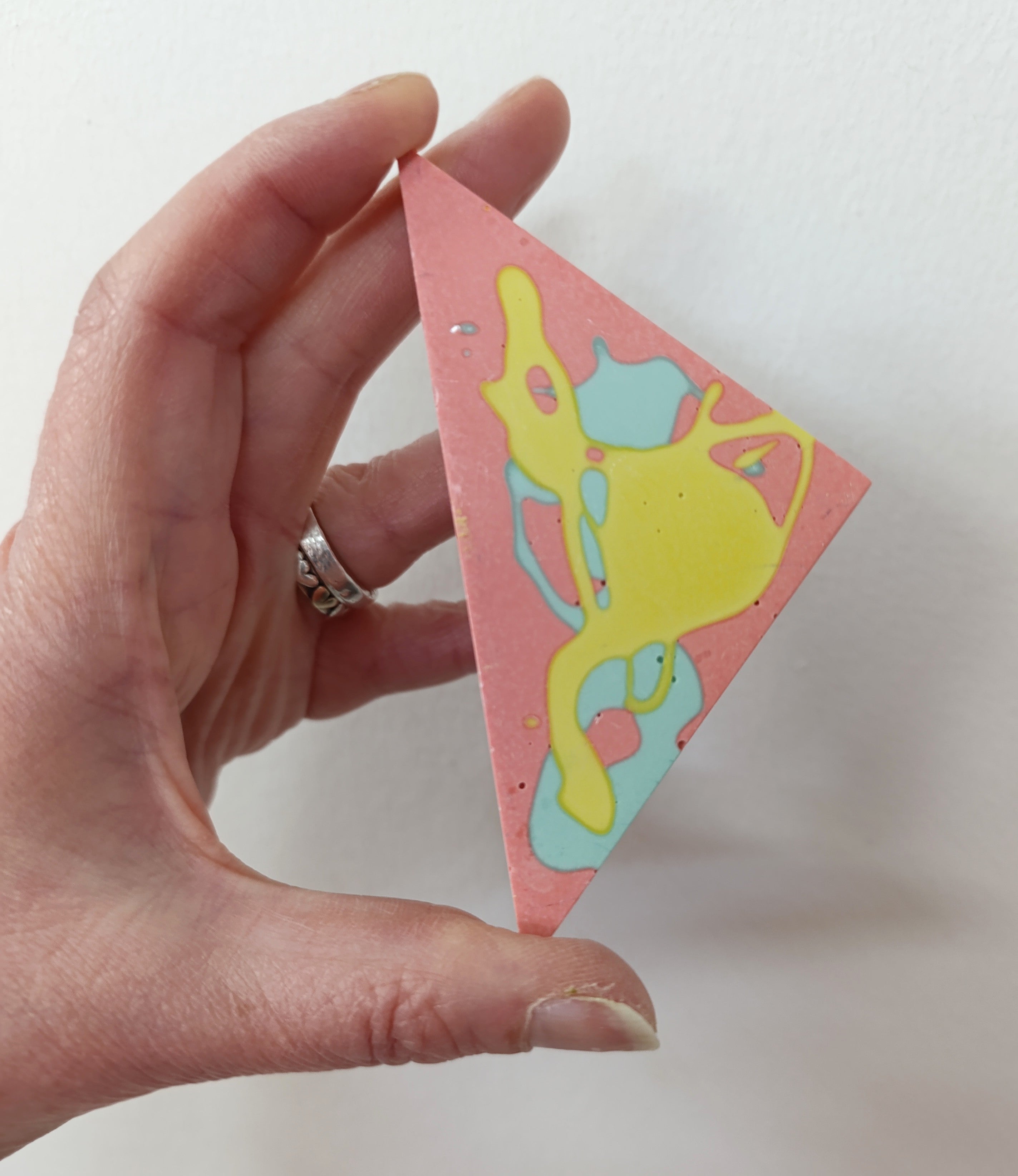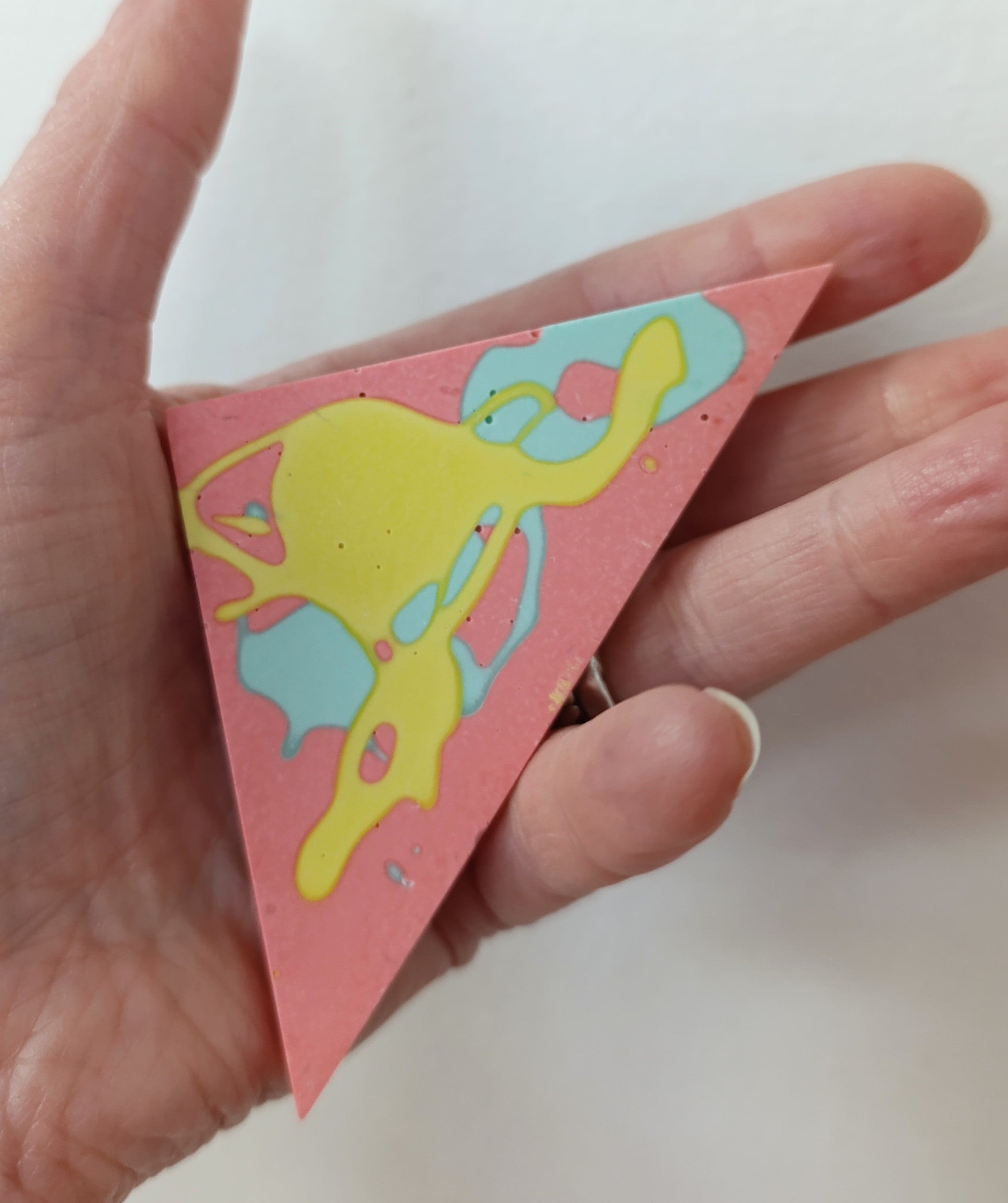 PINK, BLUE & YELLOW TRIANGLE BROOCH - MAXI