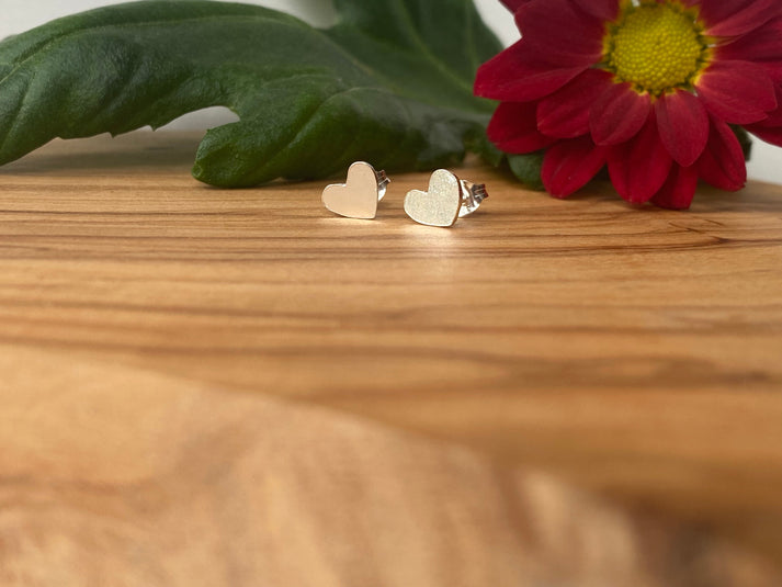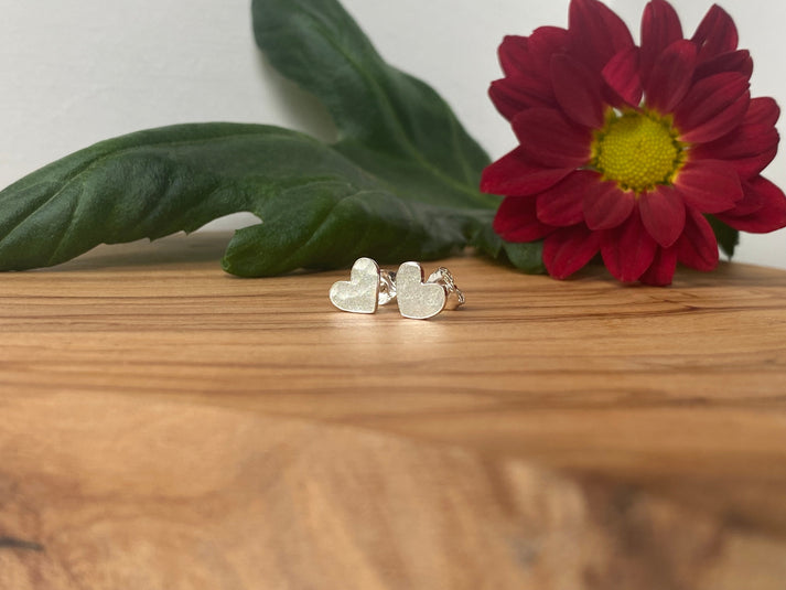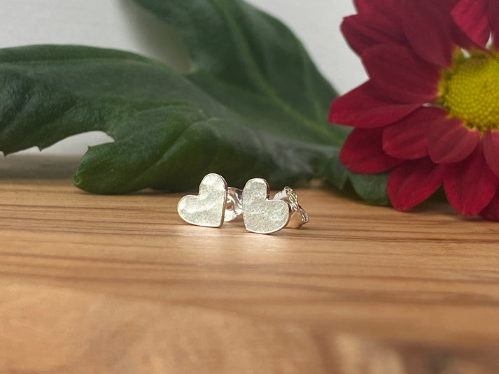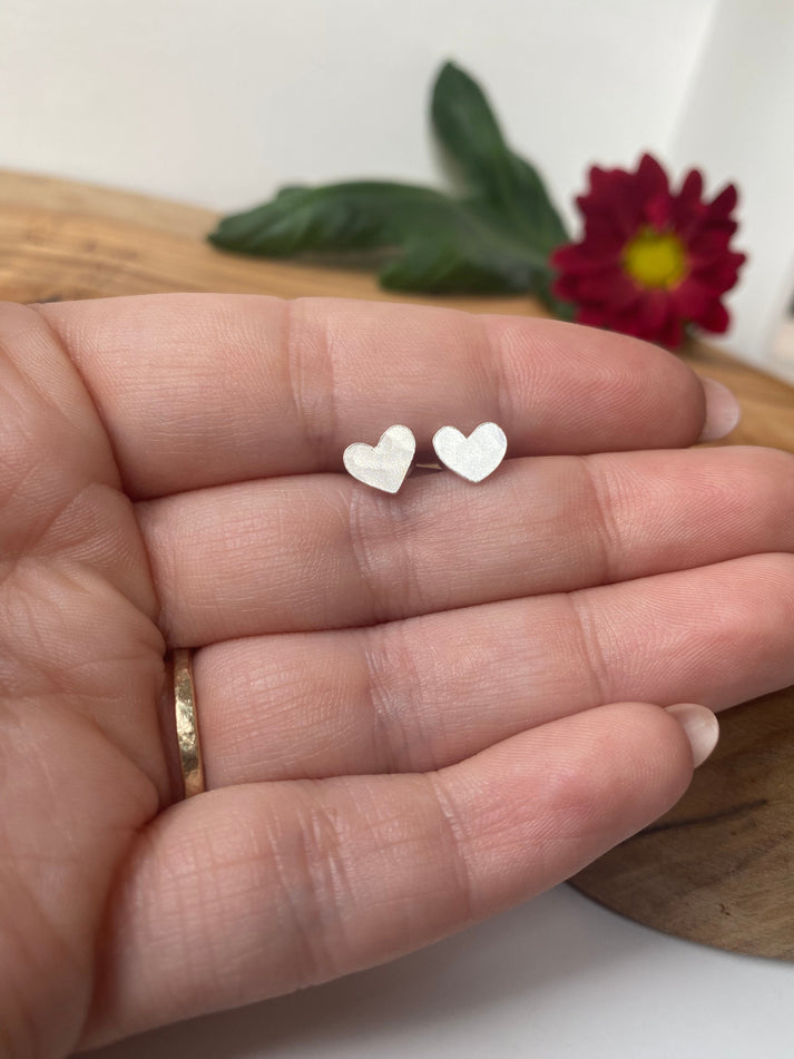 These Hammered silver studs are hand pierced into a feminine, yet sturdy heart.