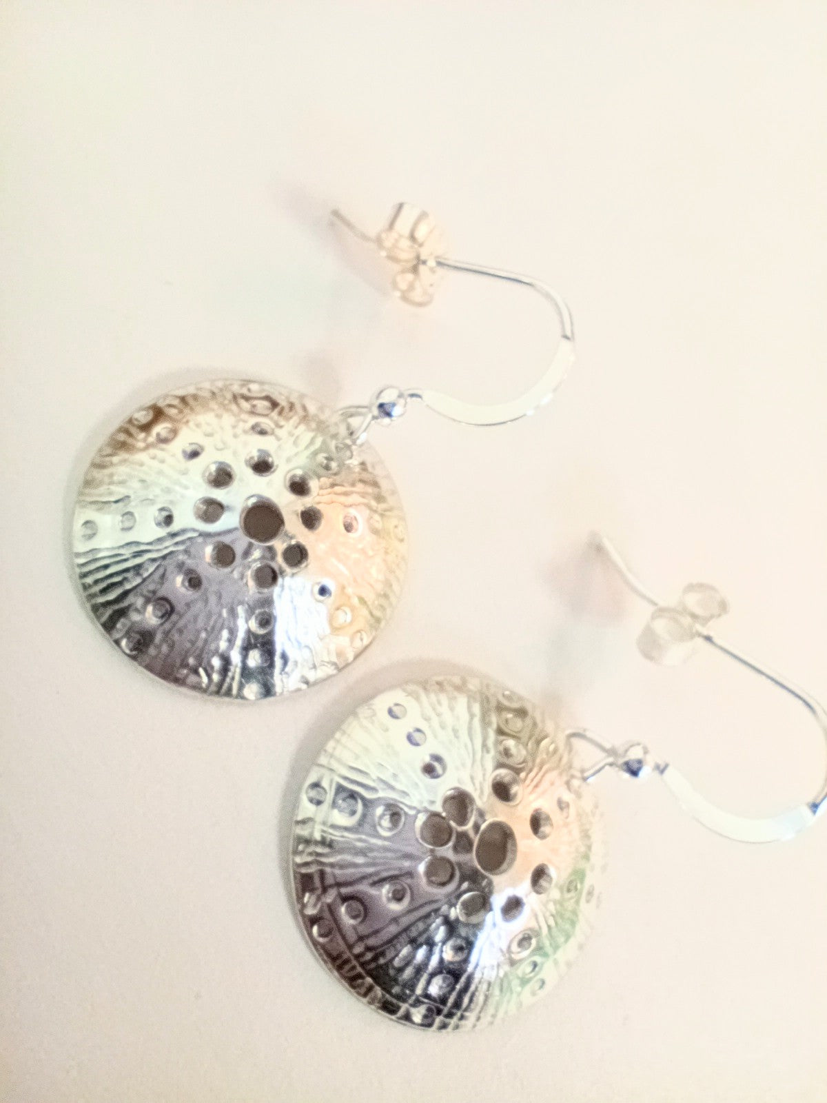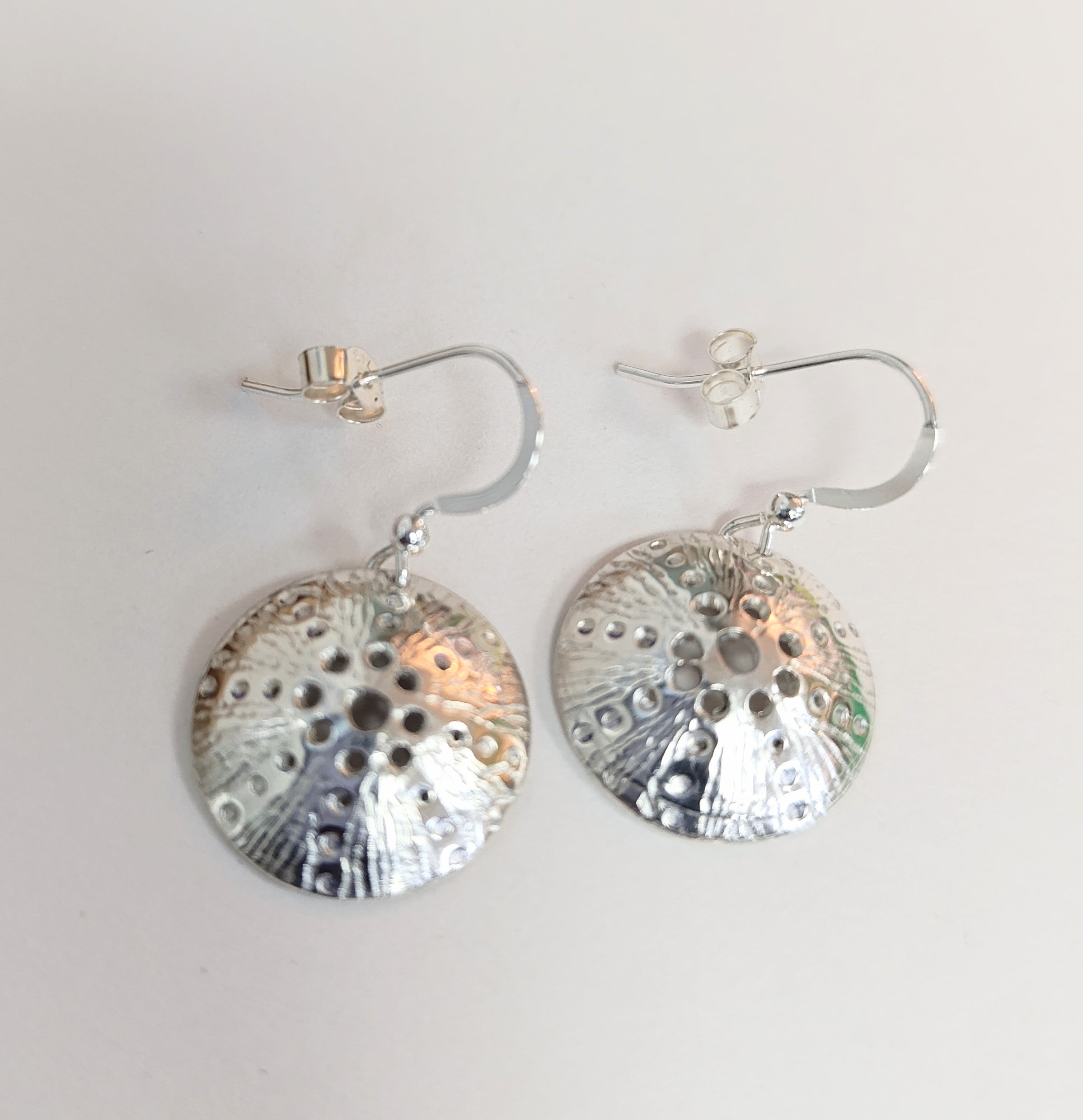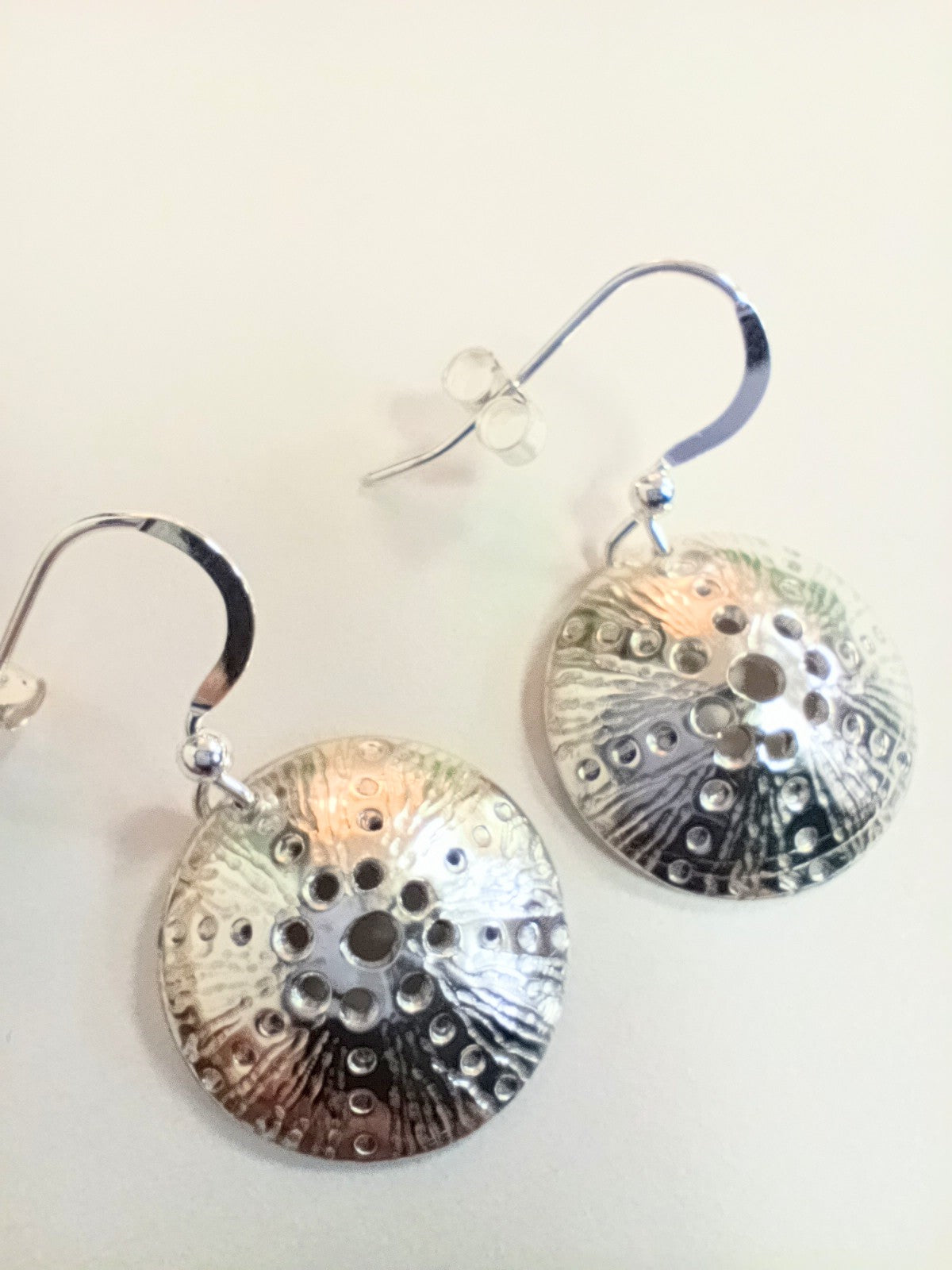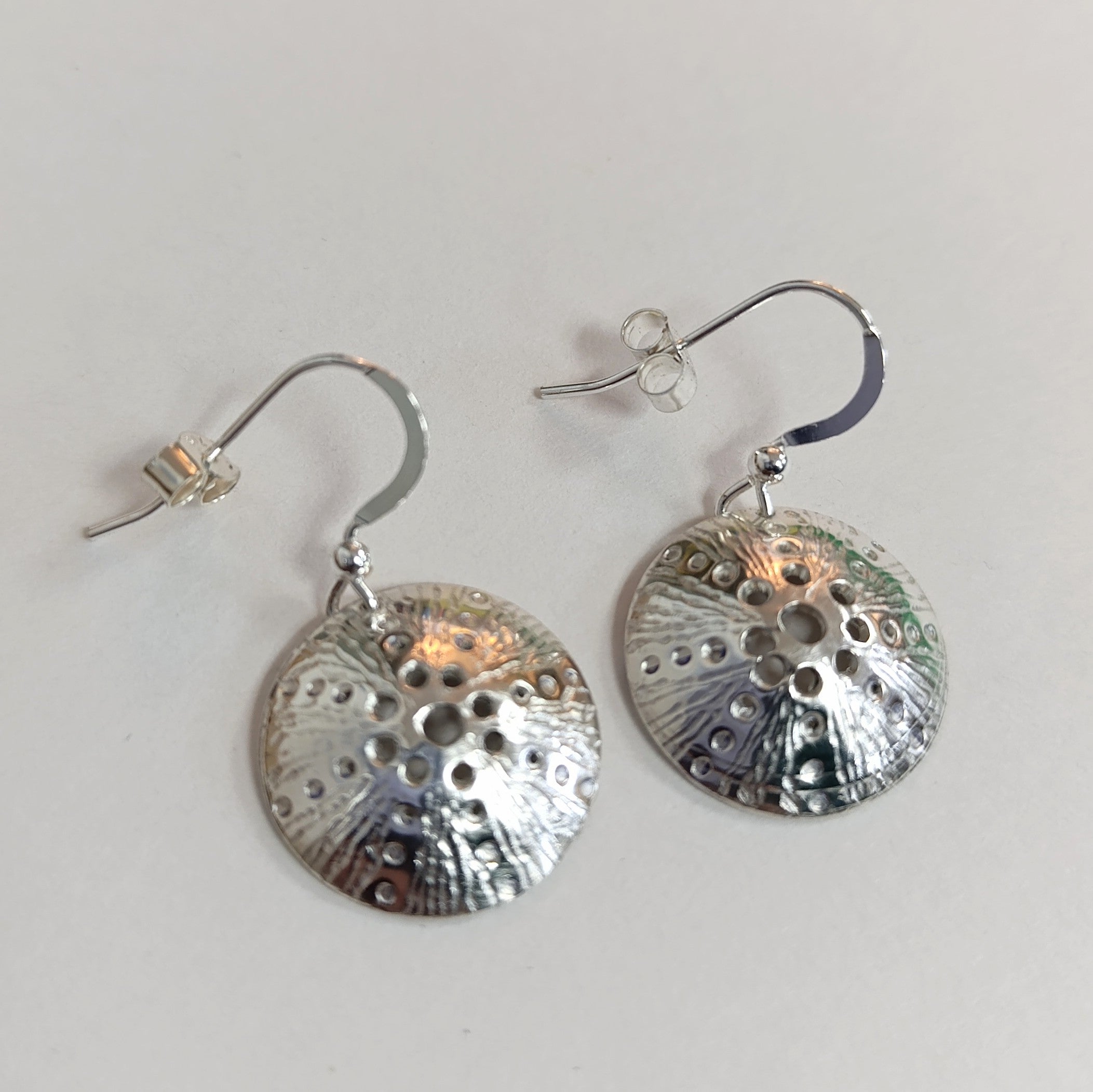 The earrings hace been punched and engraved to give the appearance of the outside of a sea urchin.