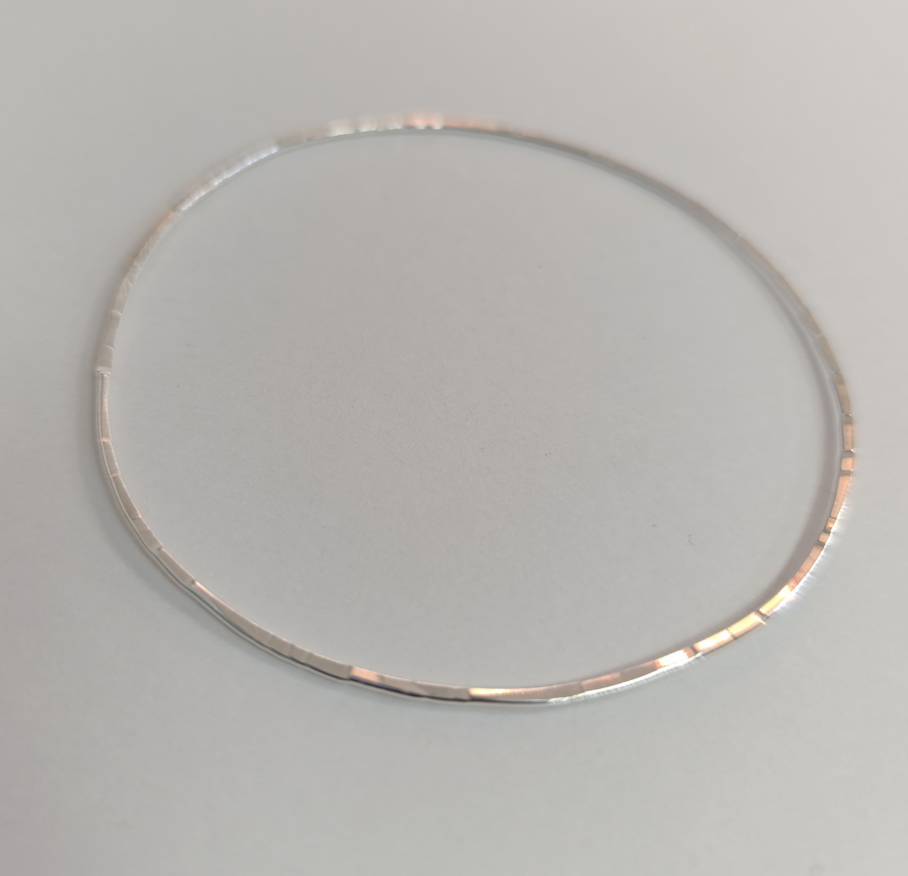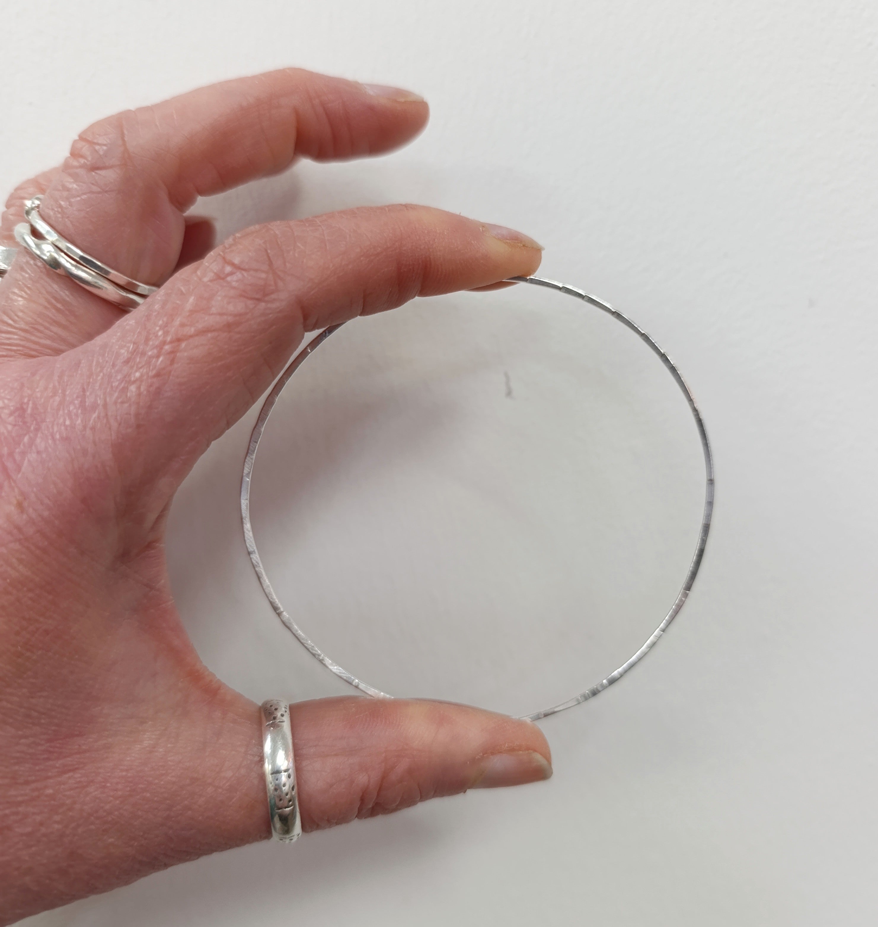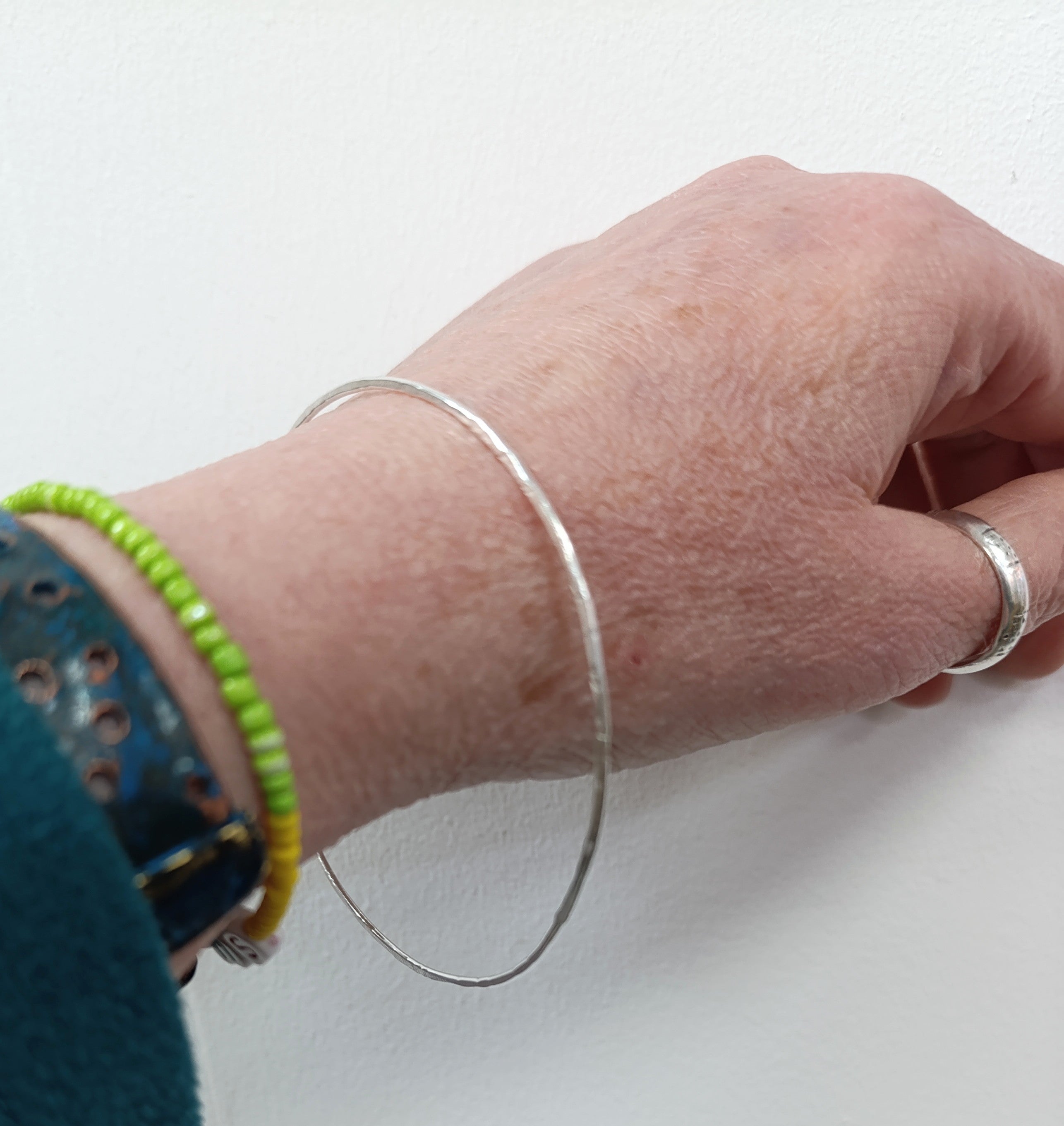 The bangle is made from a thin silver wire so it can be worn easily with other bangles or bracelets.