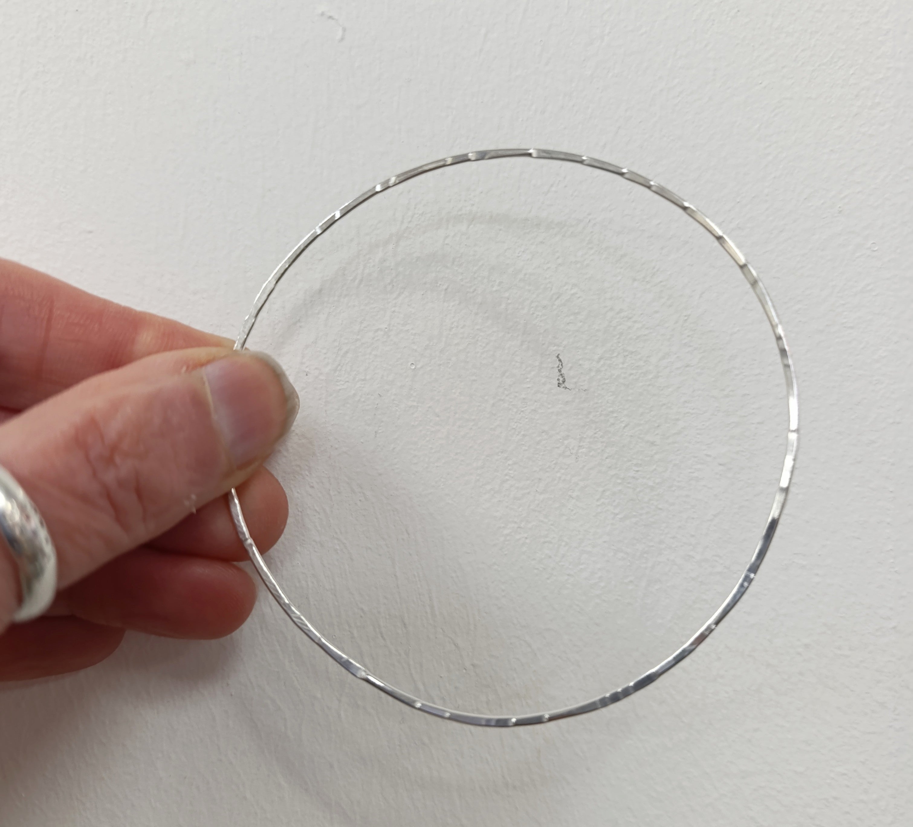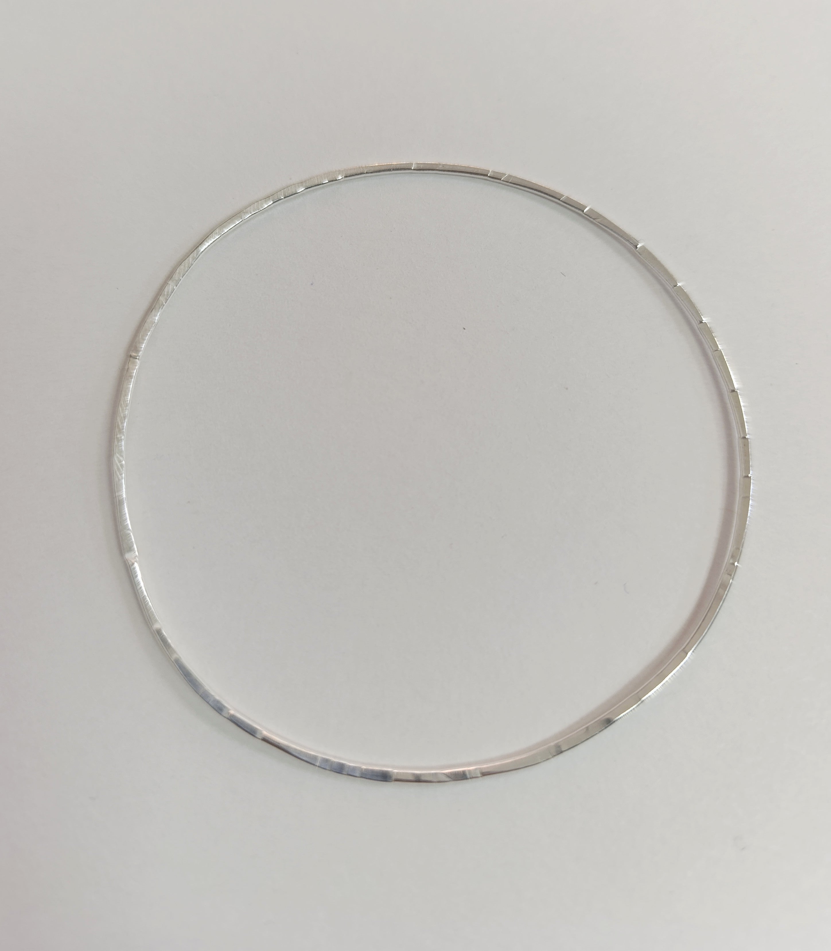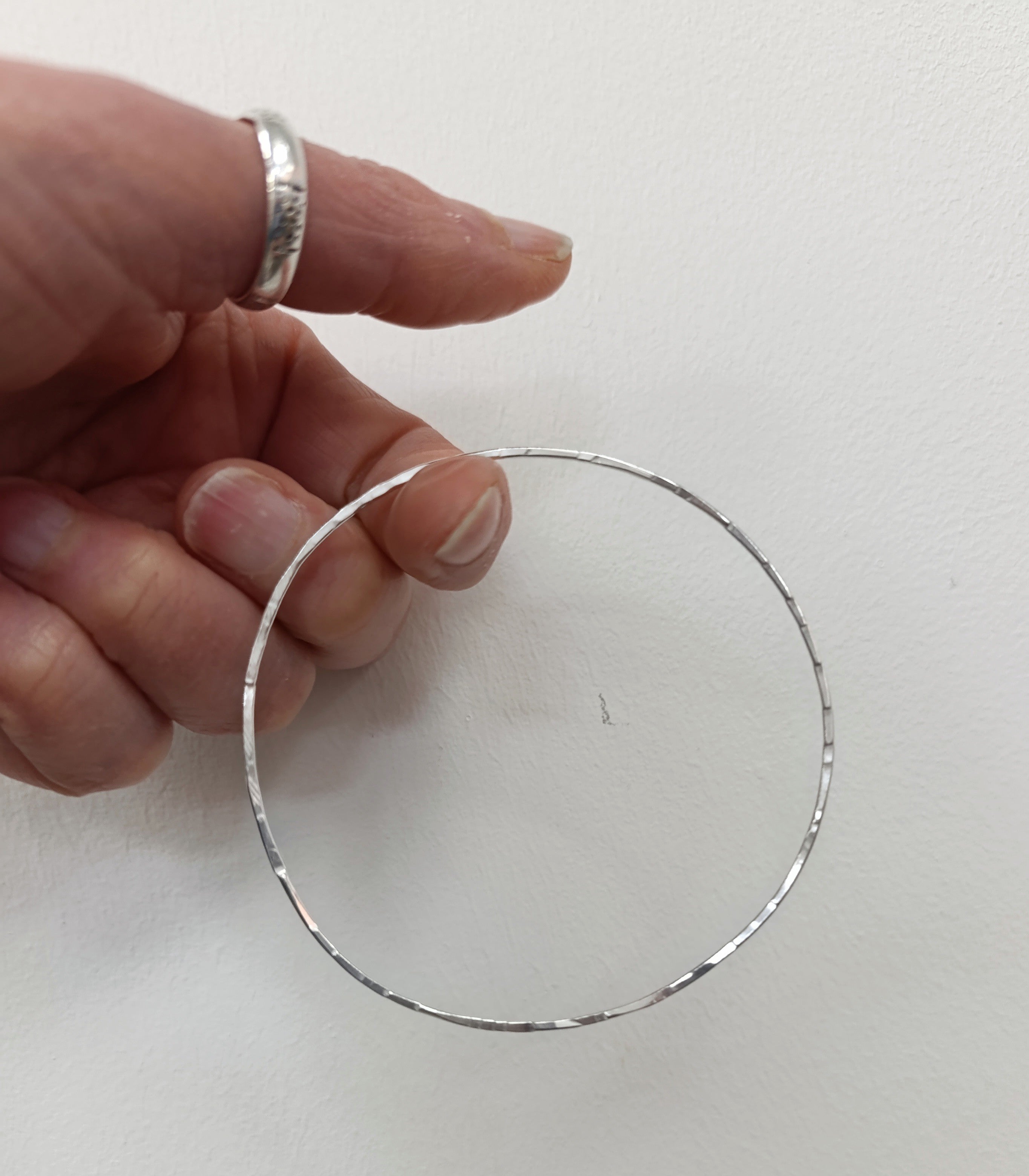 The bangle is made from a thin silver wire so it can be worn easily with other bangles or bracelets.