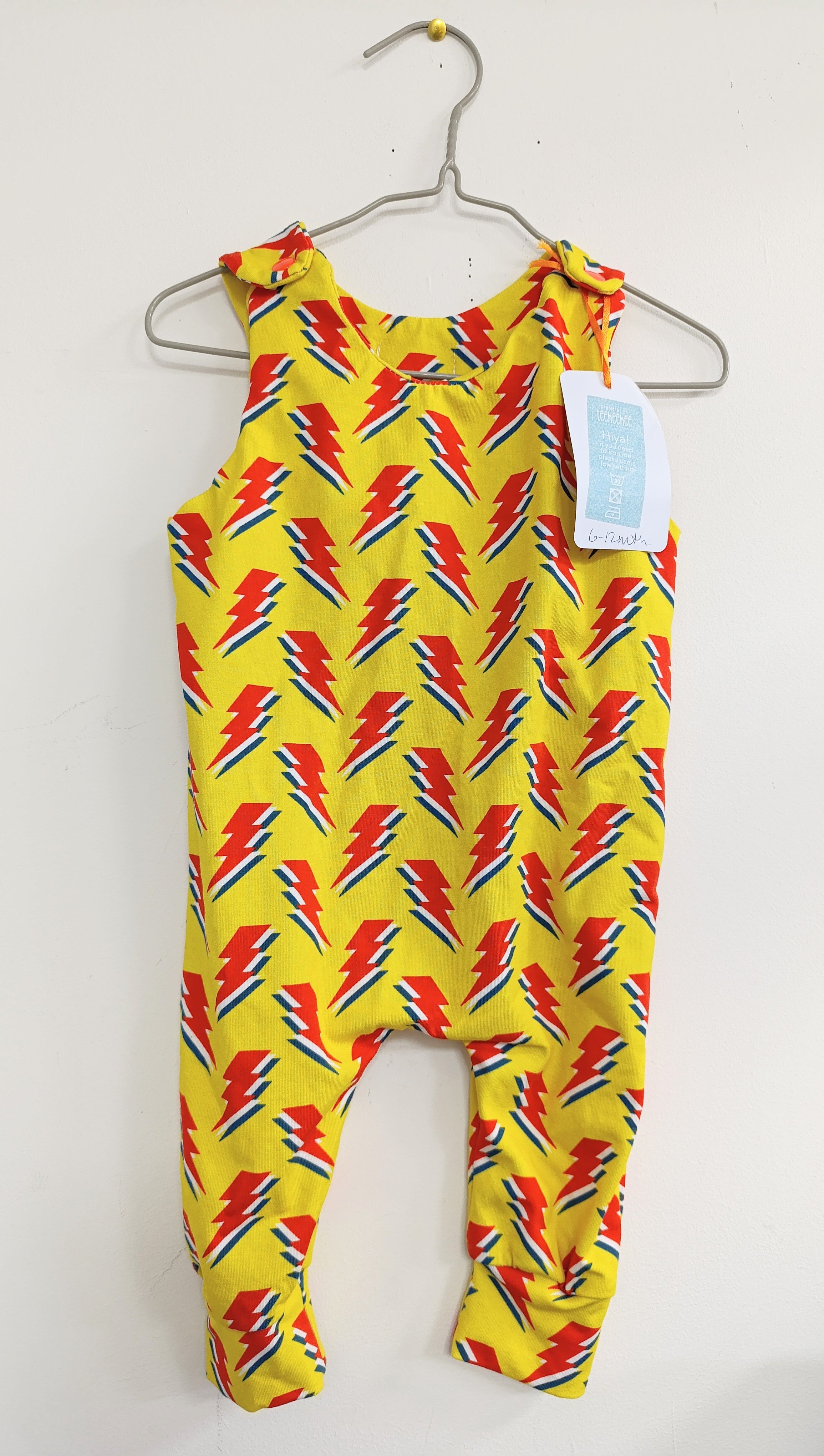 Toddler romper in a cotton jersey fabric in a fun print, made right here in Mount Florida by Vic of Handmade by TeeHeeHee!