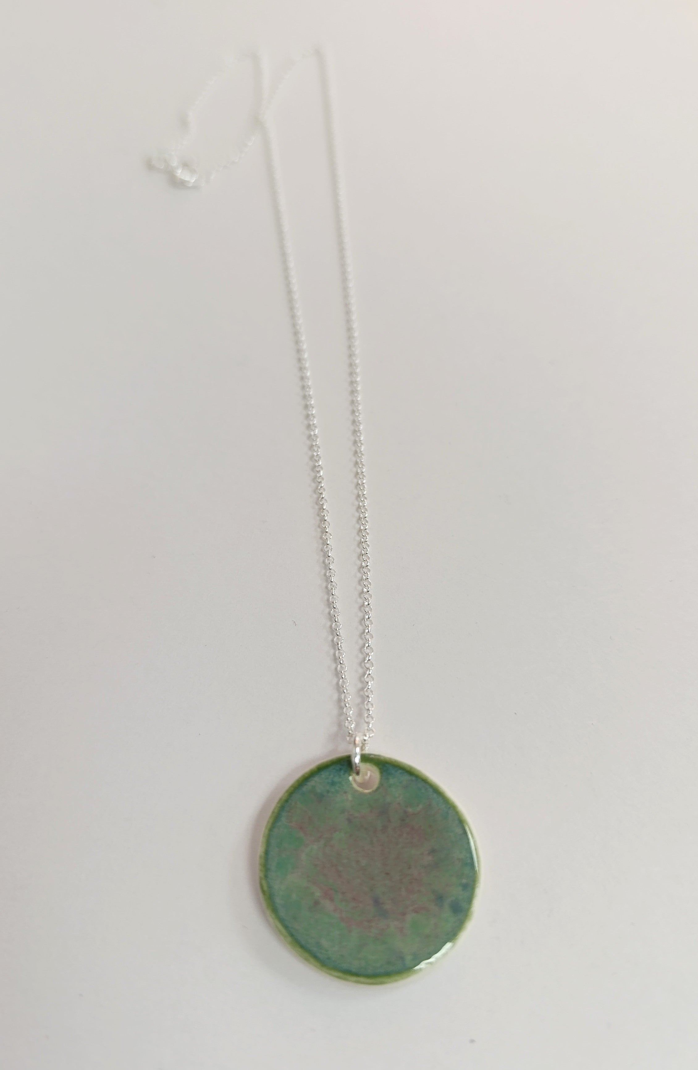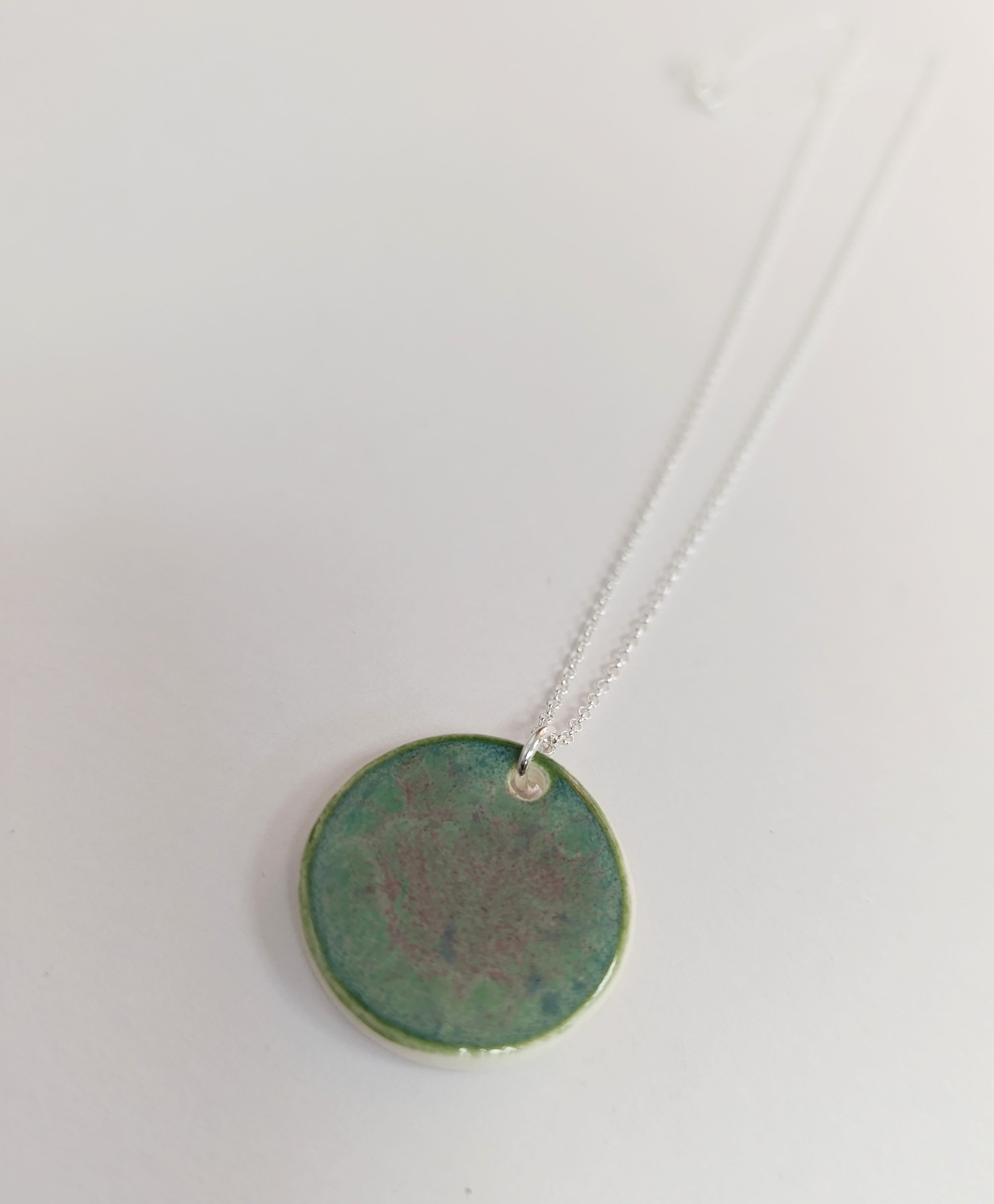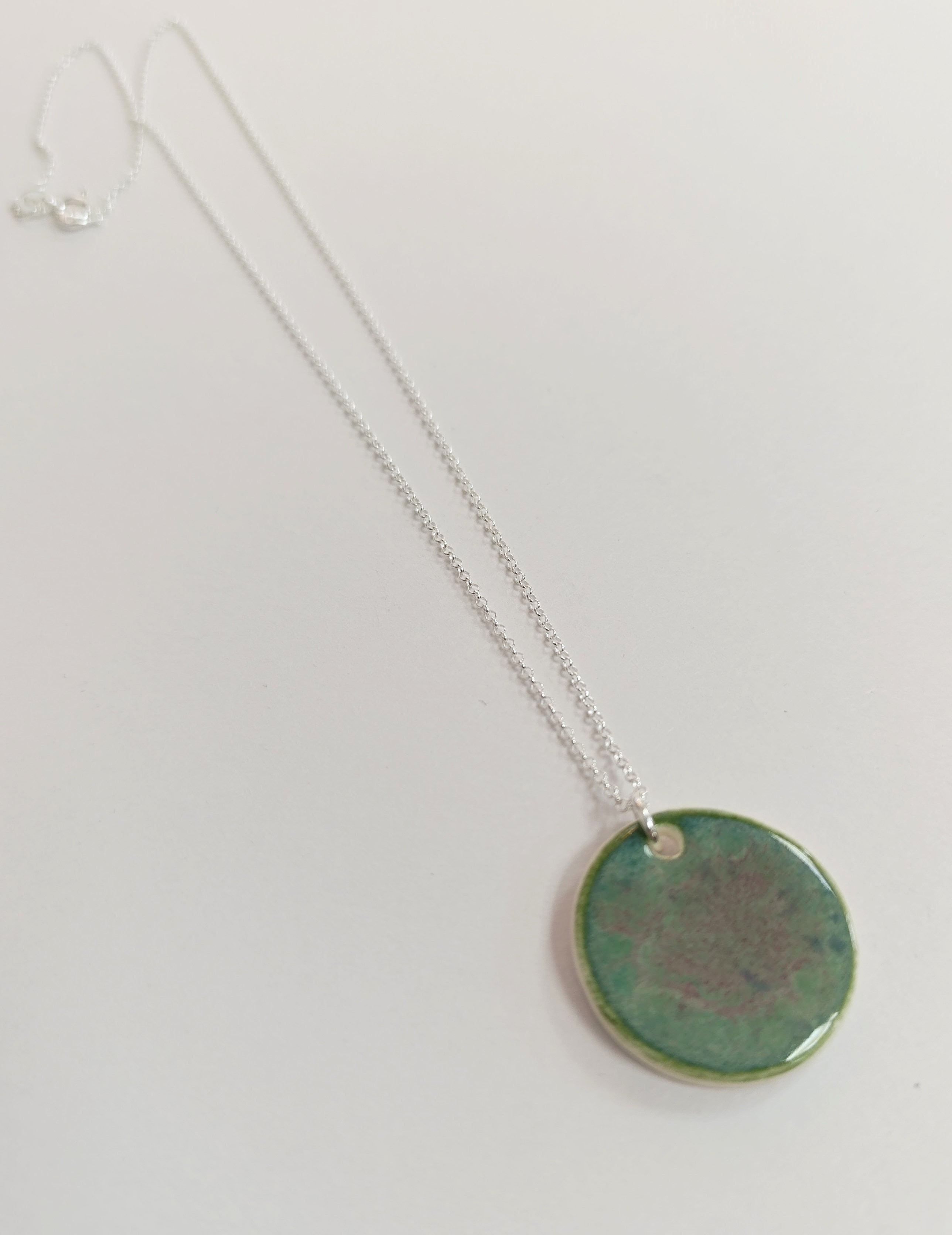 Pretty ceramic pendant from Argyll based potter and jeweller, Helen of Driftwood Harp.