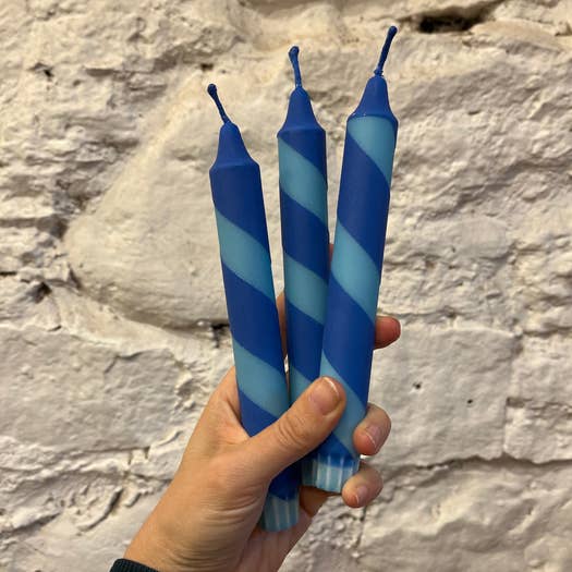 Deep blue and pale blue stripe dinner candles