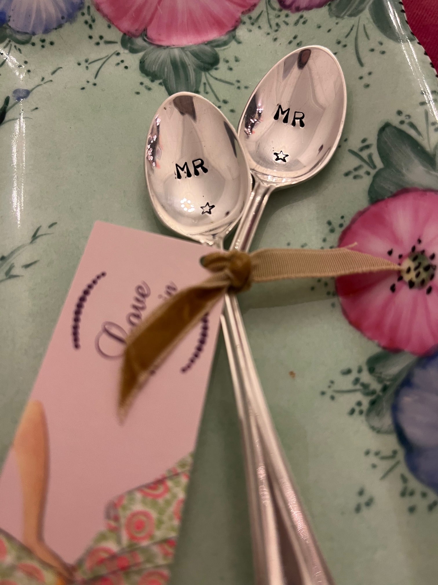 'Mr & Mr' - lovely hand stamped vintage teaspoons from Love Me Again.