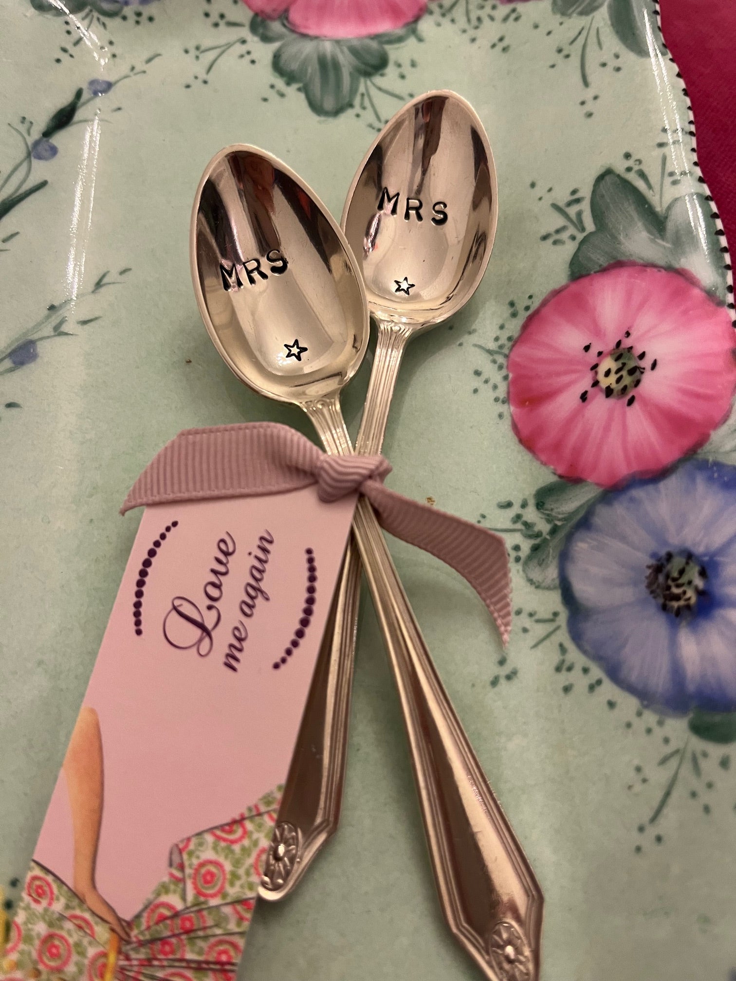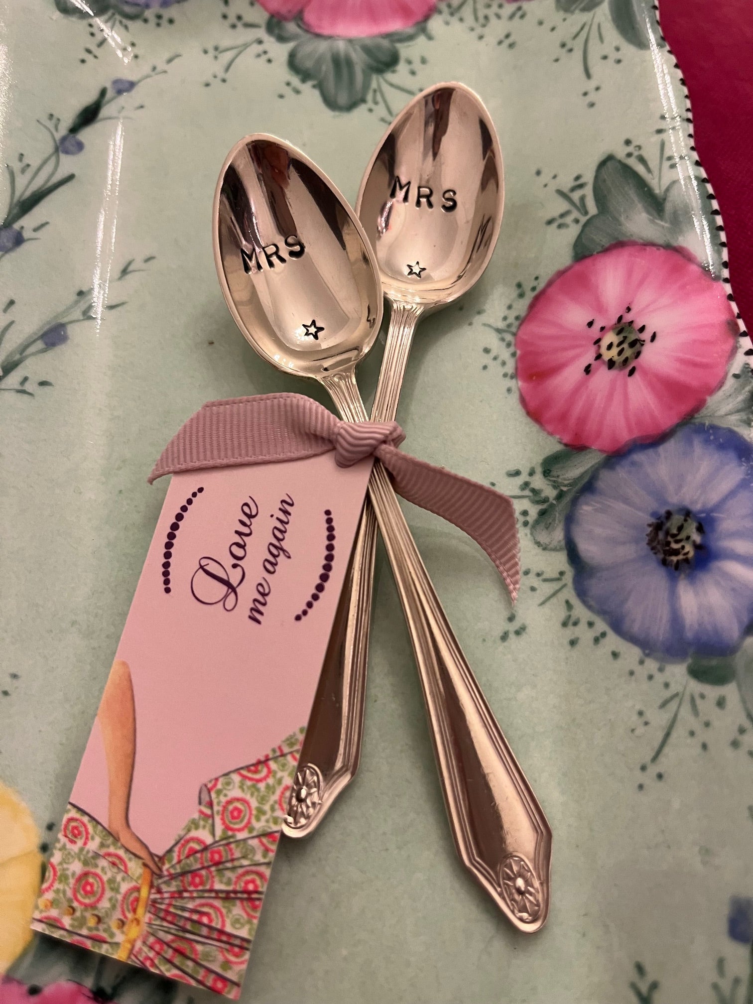 'Mrs & Mrs' - lovely hand stamped vintage teaspoons from Love Me Again.