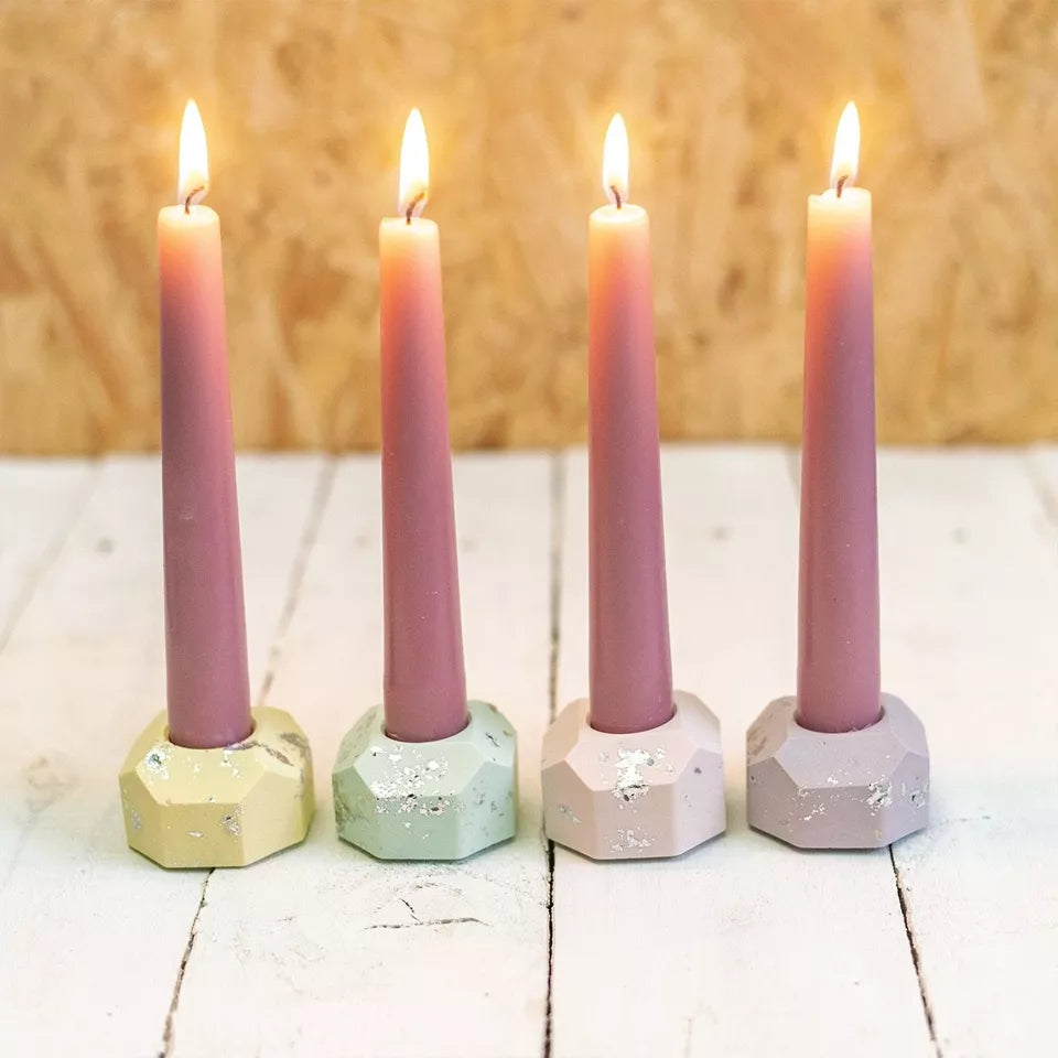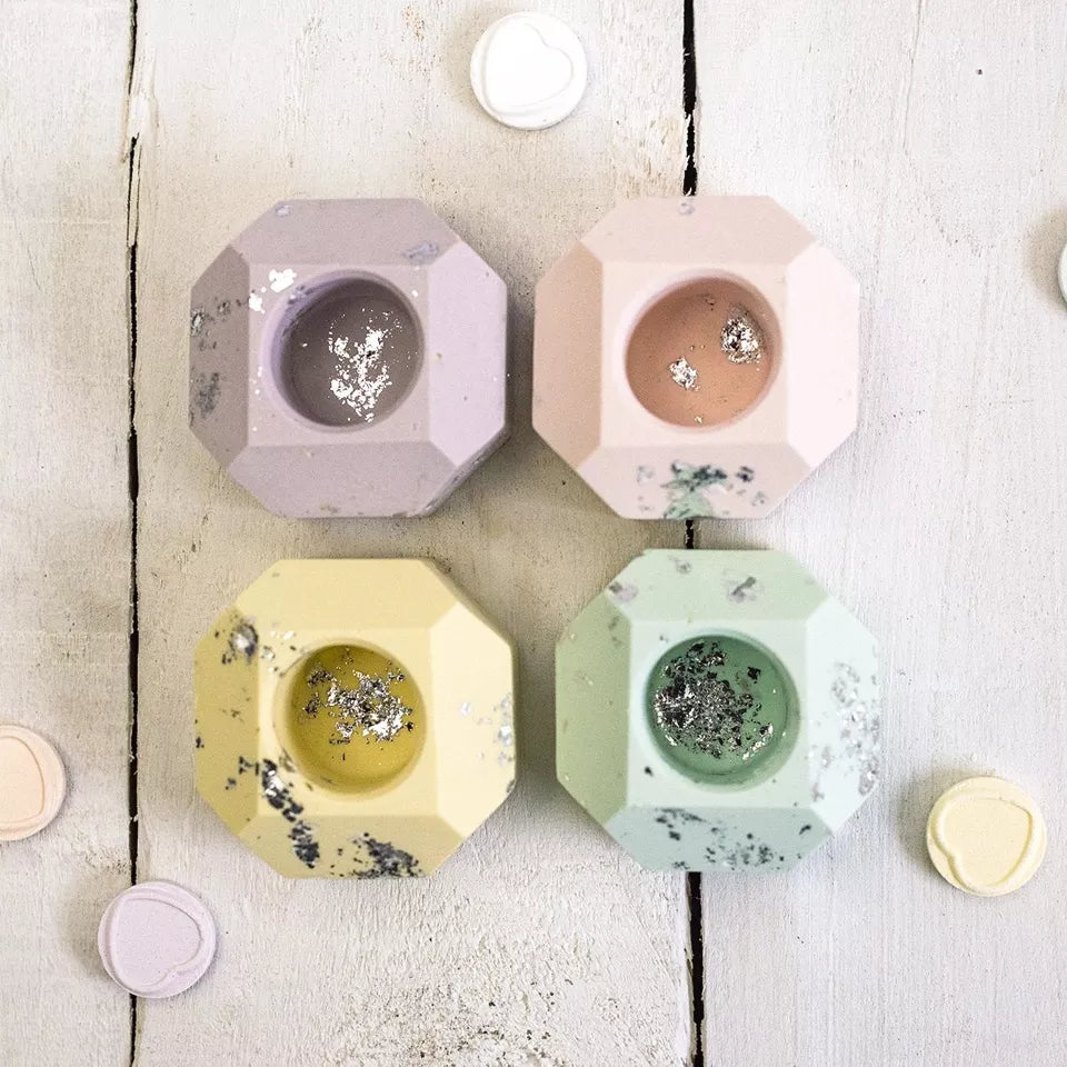 with these pastel and silver leaf jesmonite dinner candle holders!