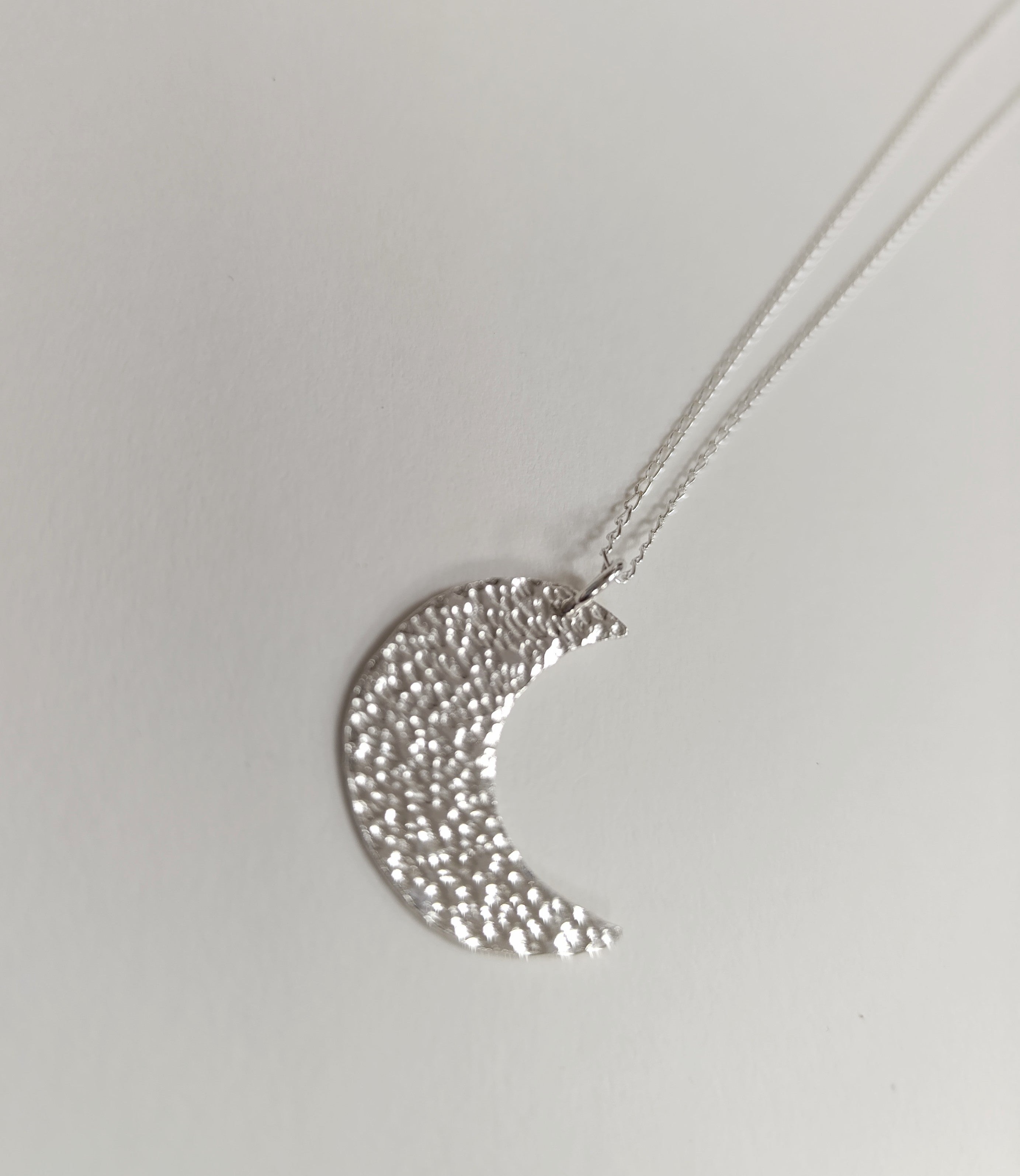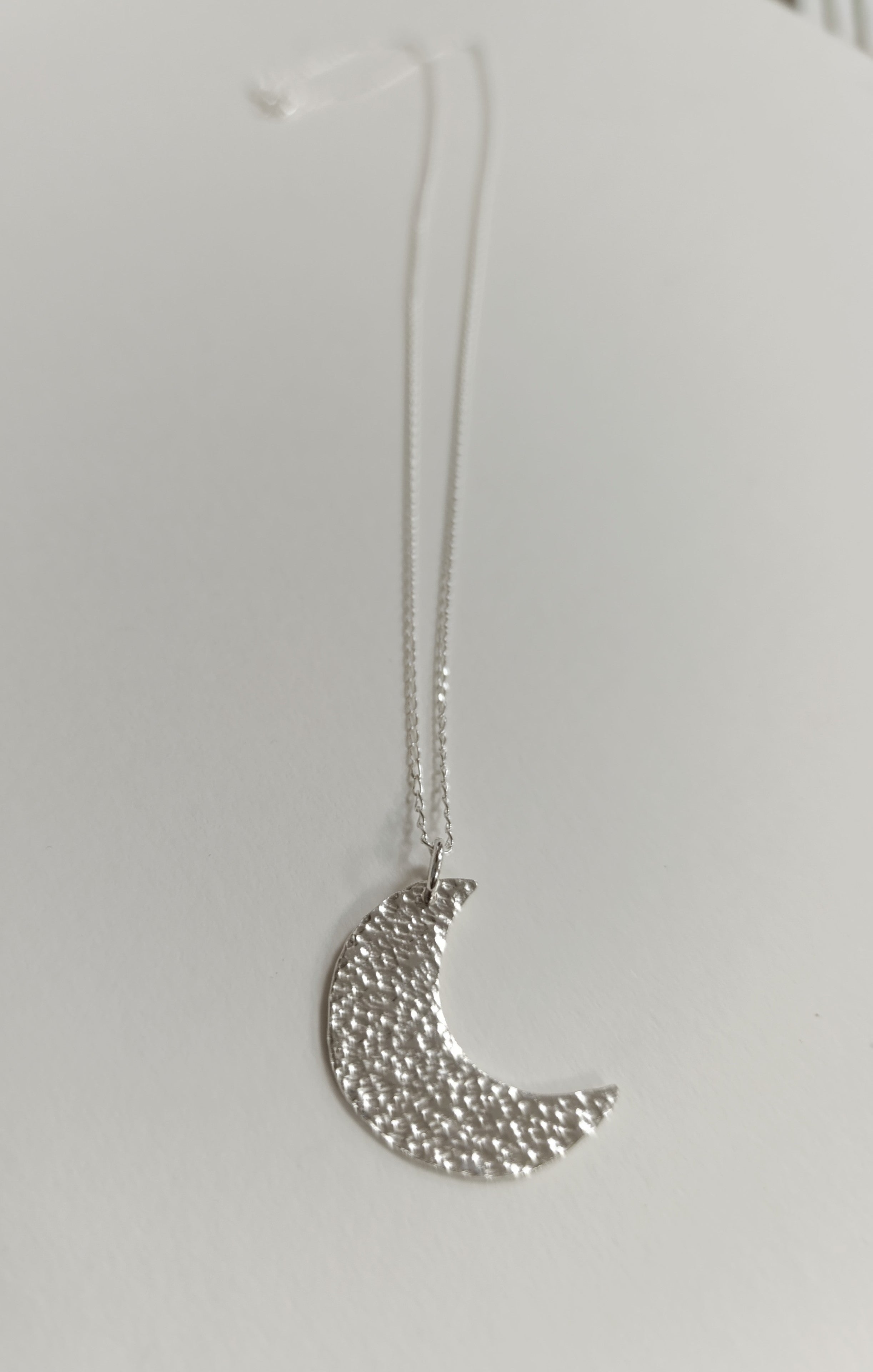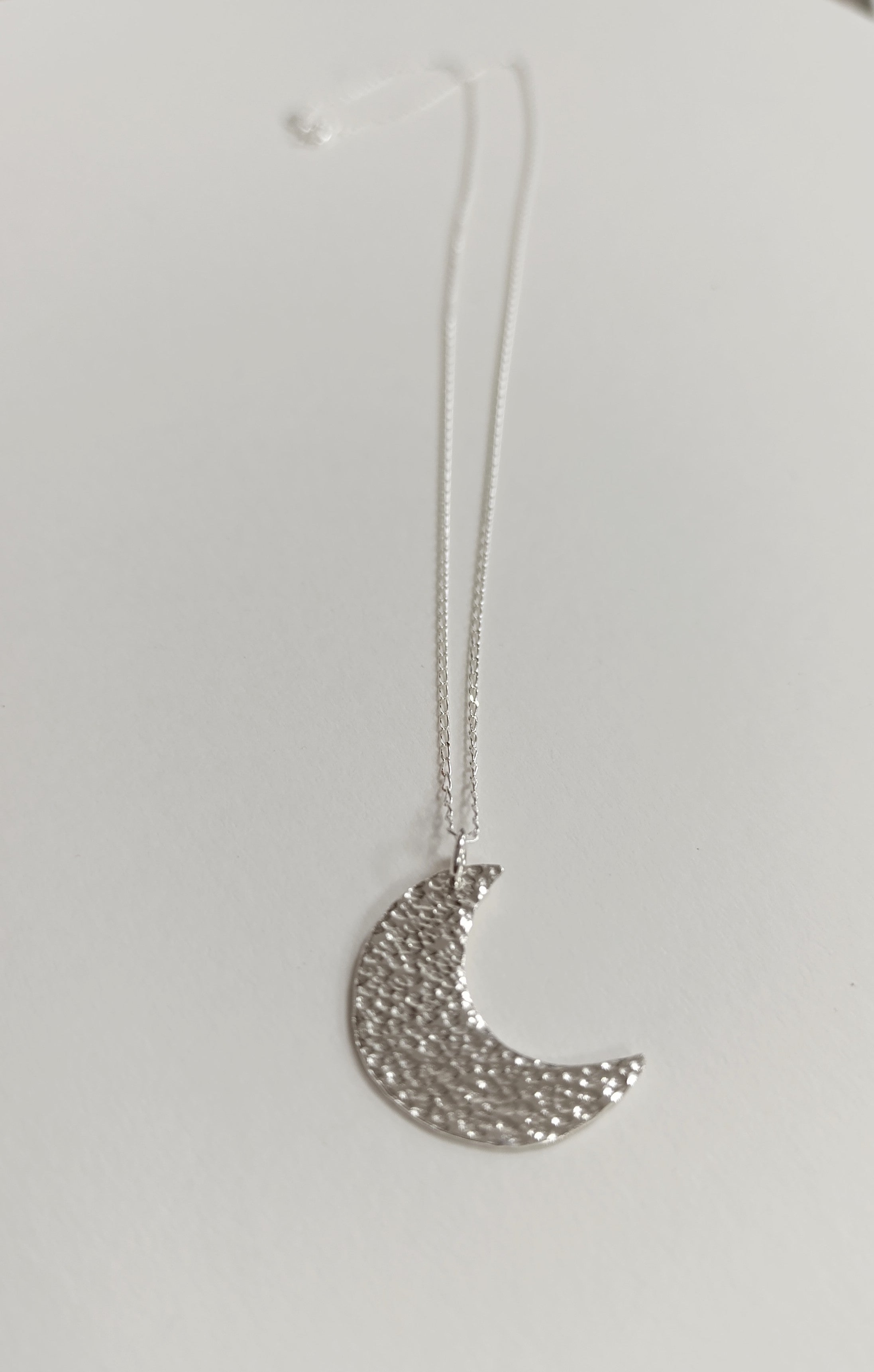 This pretty, sterling silver crescent moon pendant has been handcrafted by southside of Glasgow based Suzi Nicol Designs.