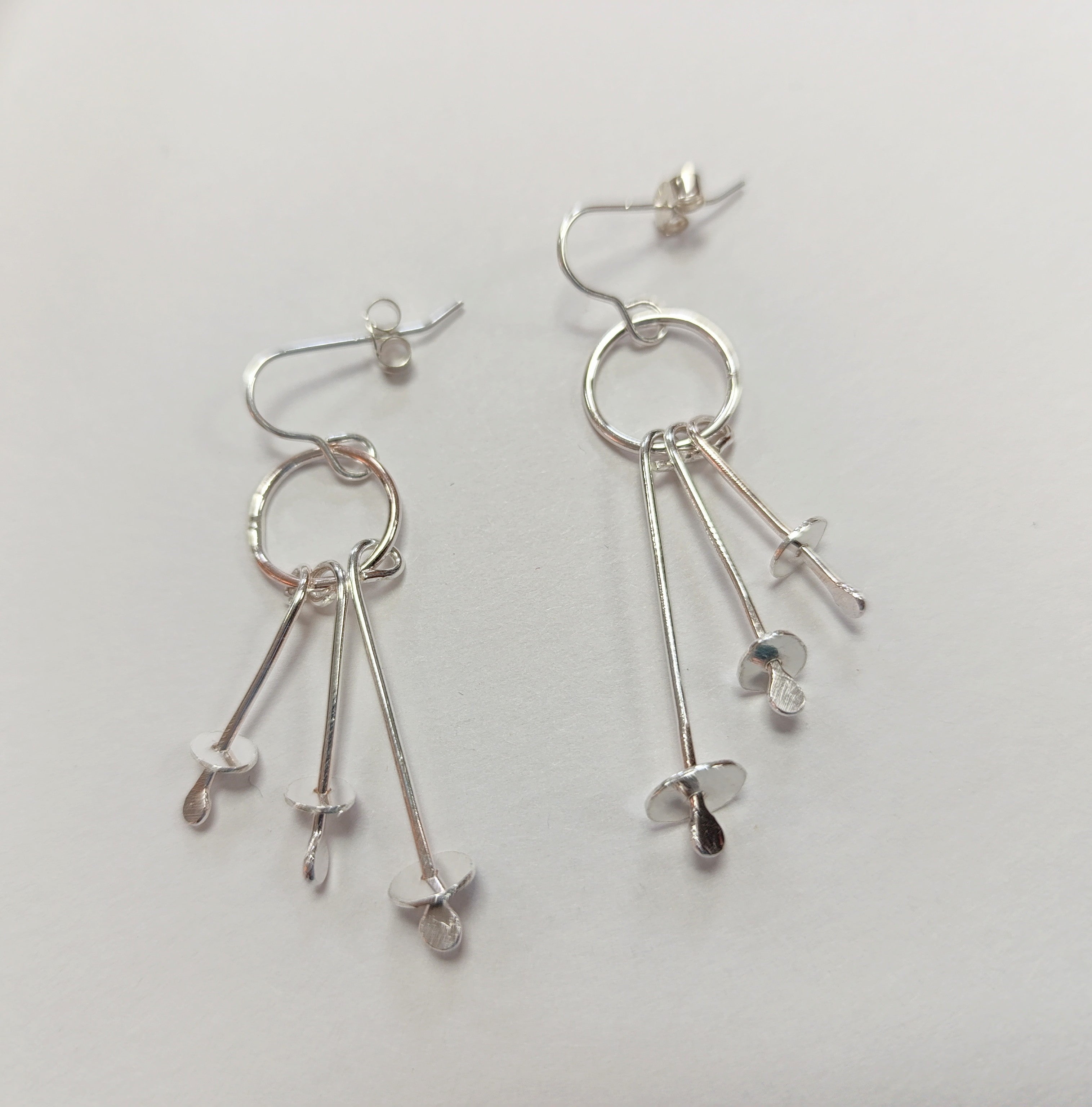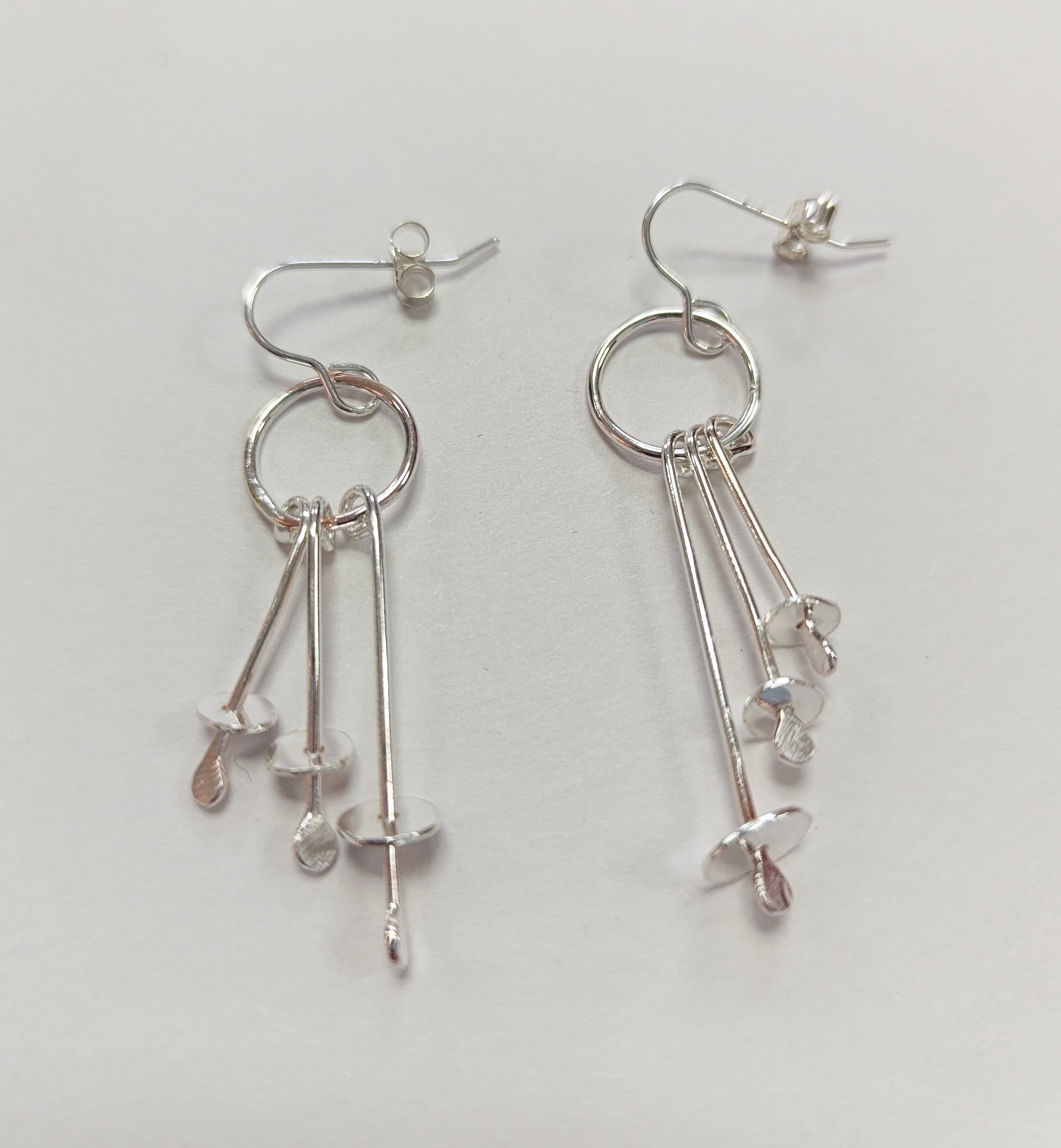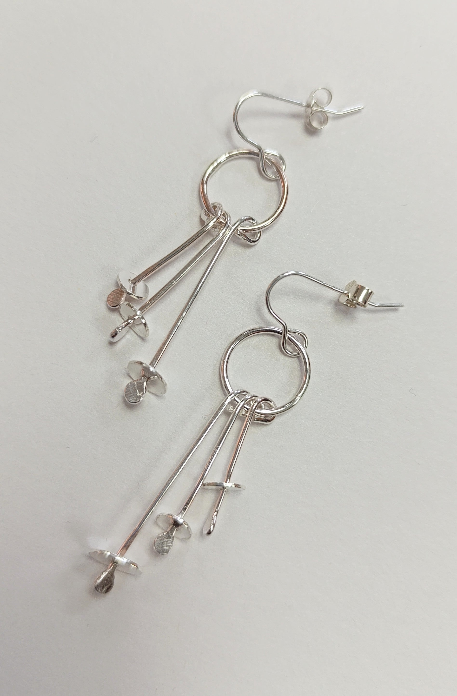 Sterling silver drops featuring 3 'lily pad' dangles from a silver hoop on each earring.