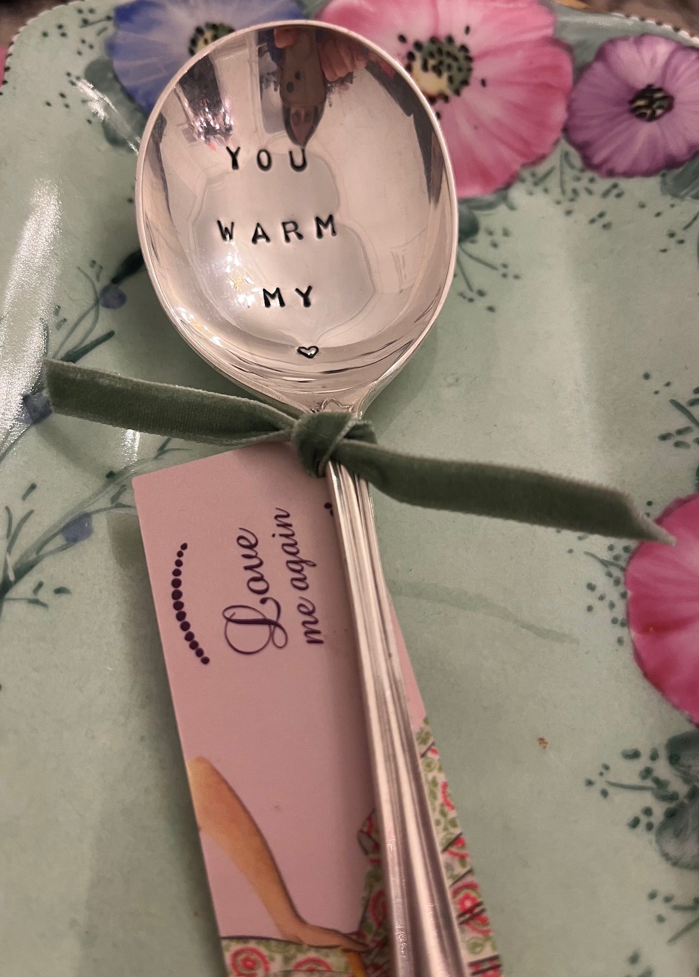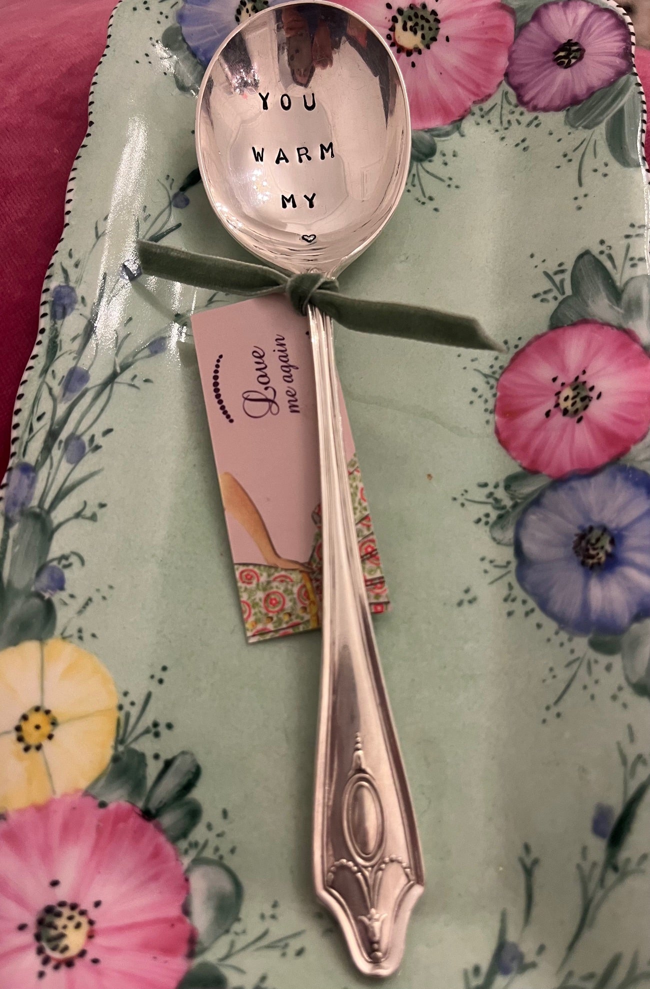 'You warm my 🤍' - lovely hand stamped vintage cereal/dessert spoons from Love Me Again.