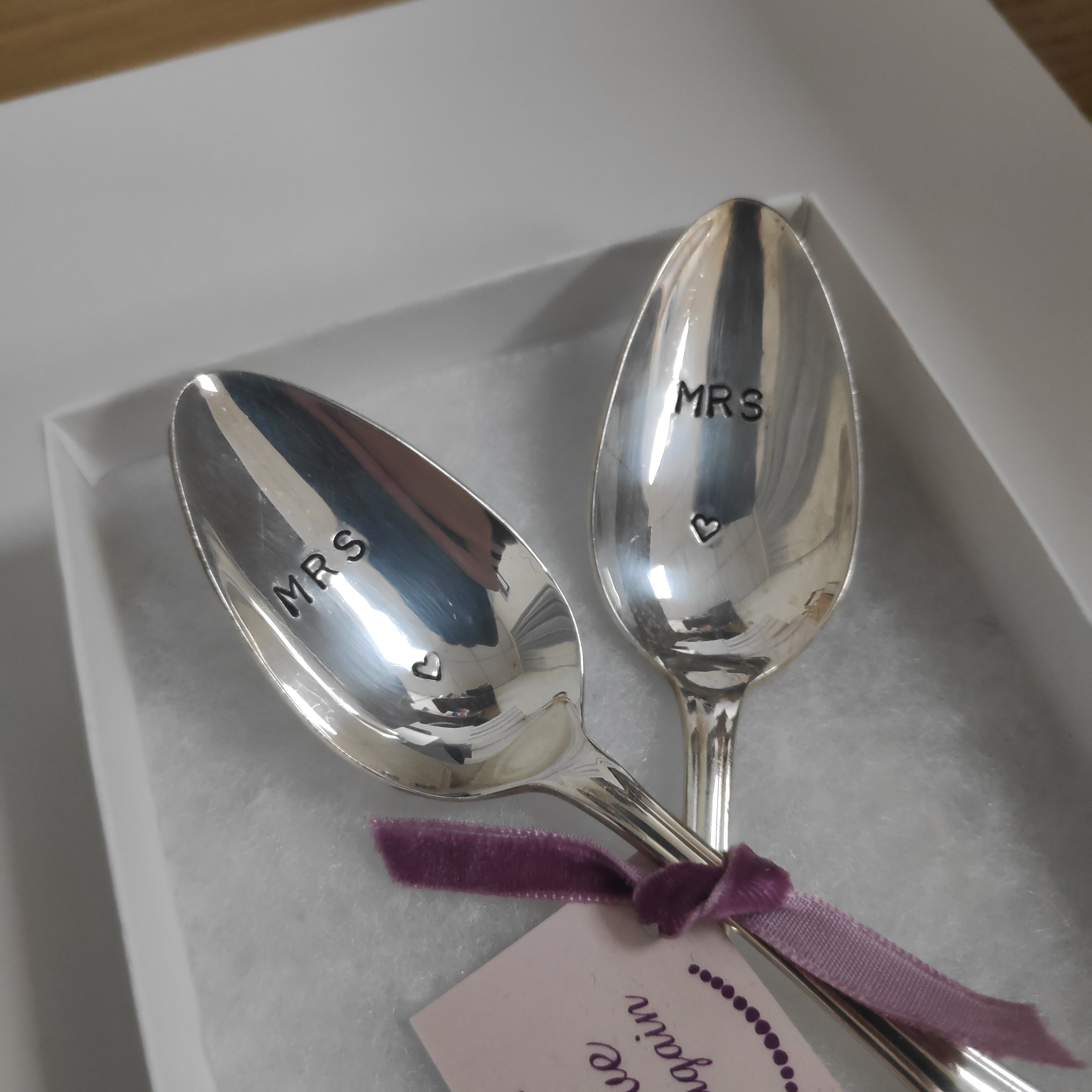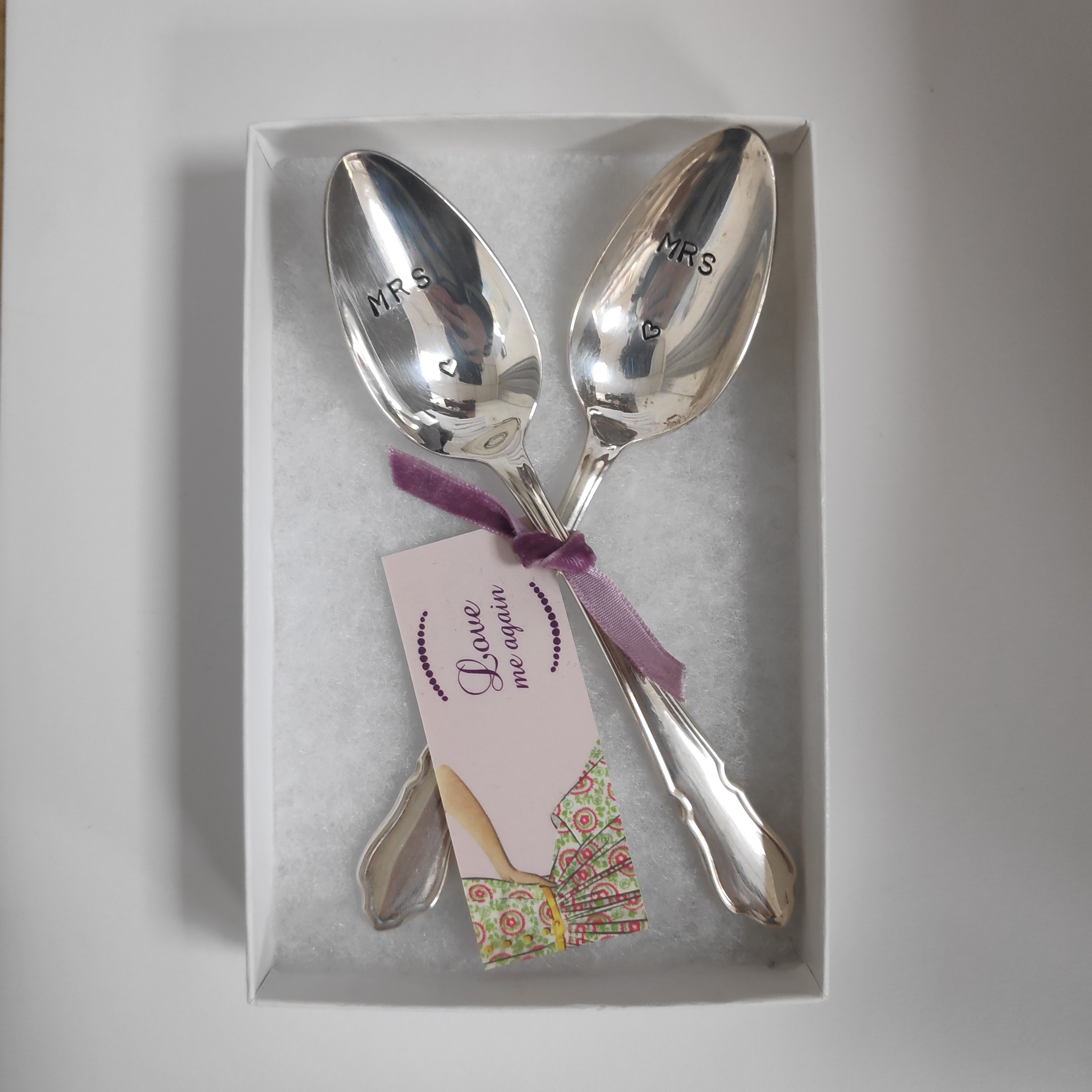 'Mrs & Mrs' - lovely hand stamped vintage teaspoons from Love Me Again.