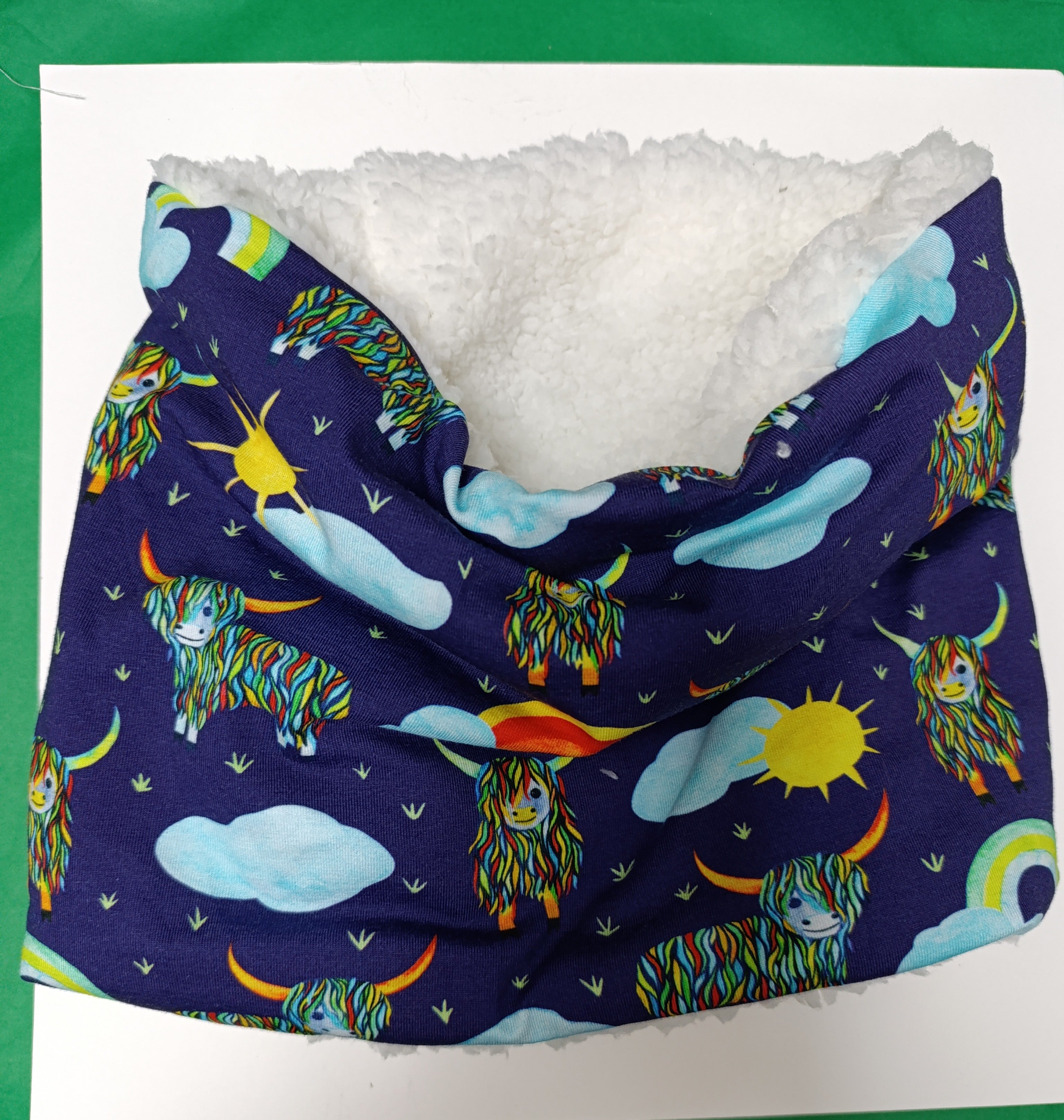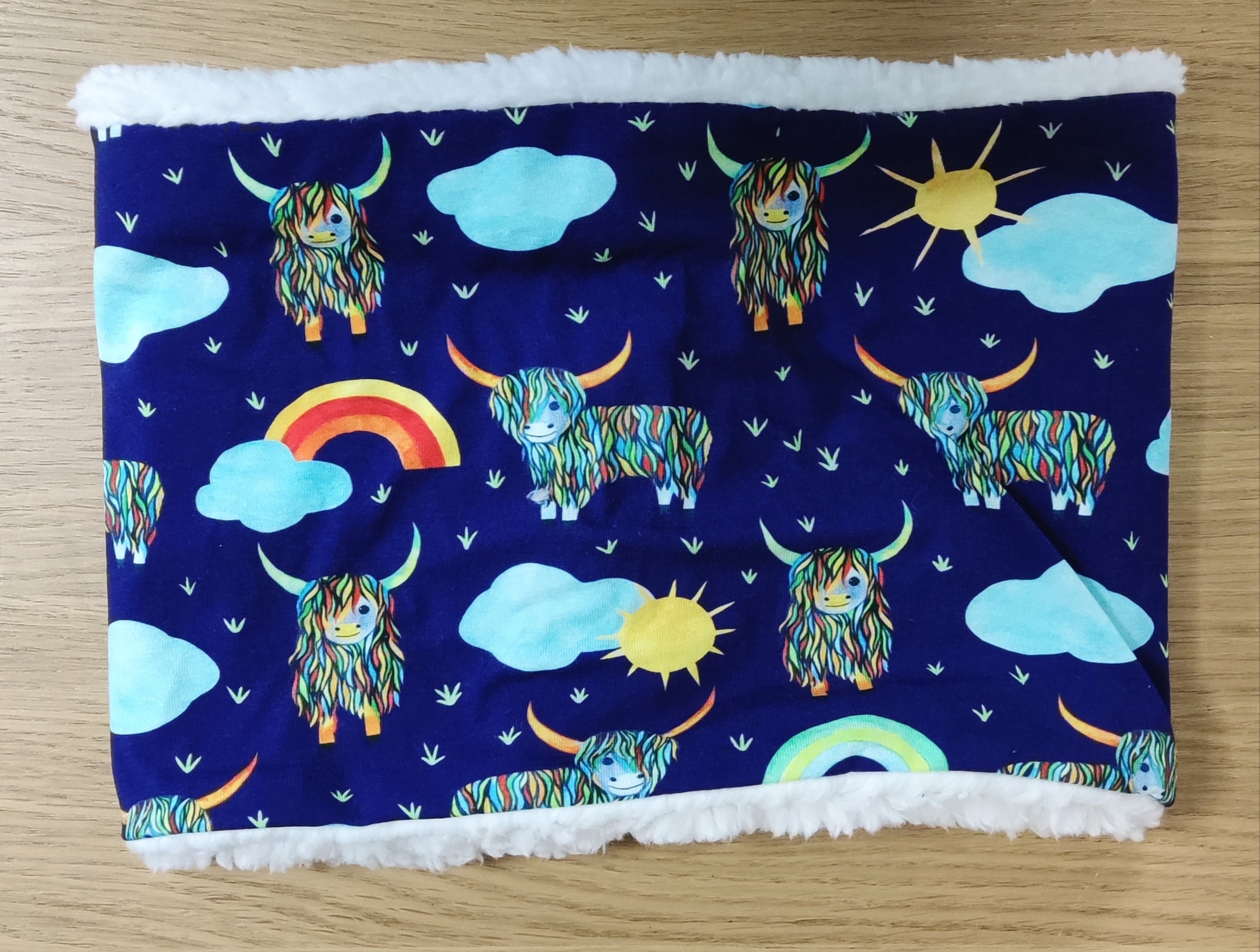 Kid's neck warmer/snood (4-11 years) - Highland cow & rainbow print