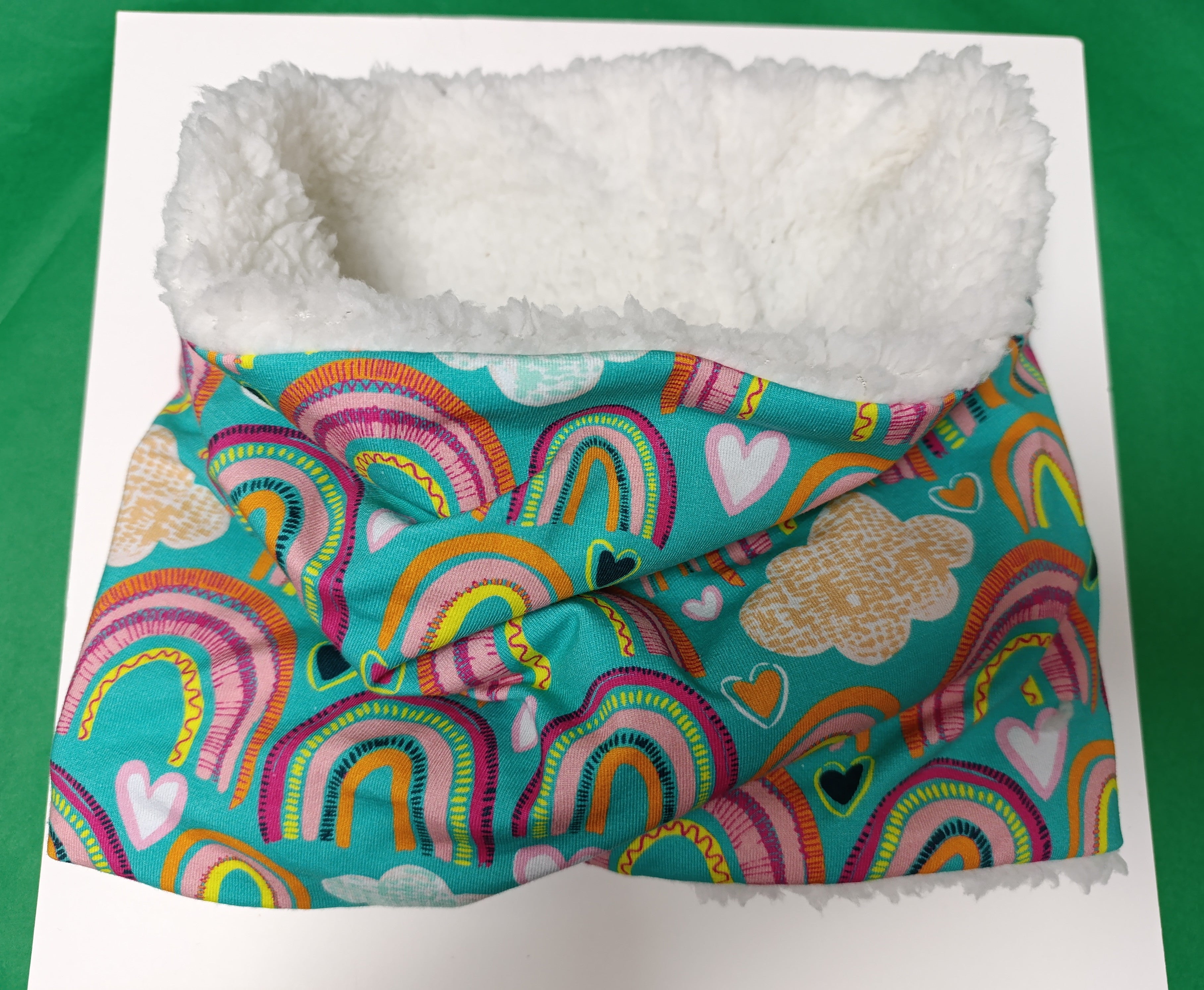 Made from cotton jersey and lambswool sherpa fleece fabric the neck warmers have 2 layers to keep you toasty and warm