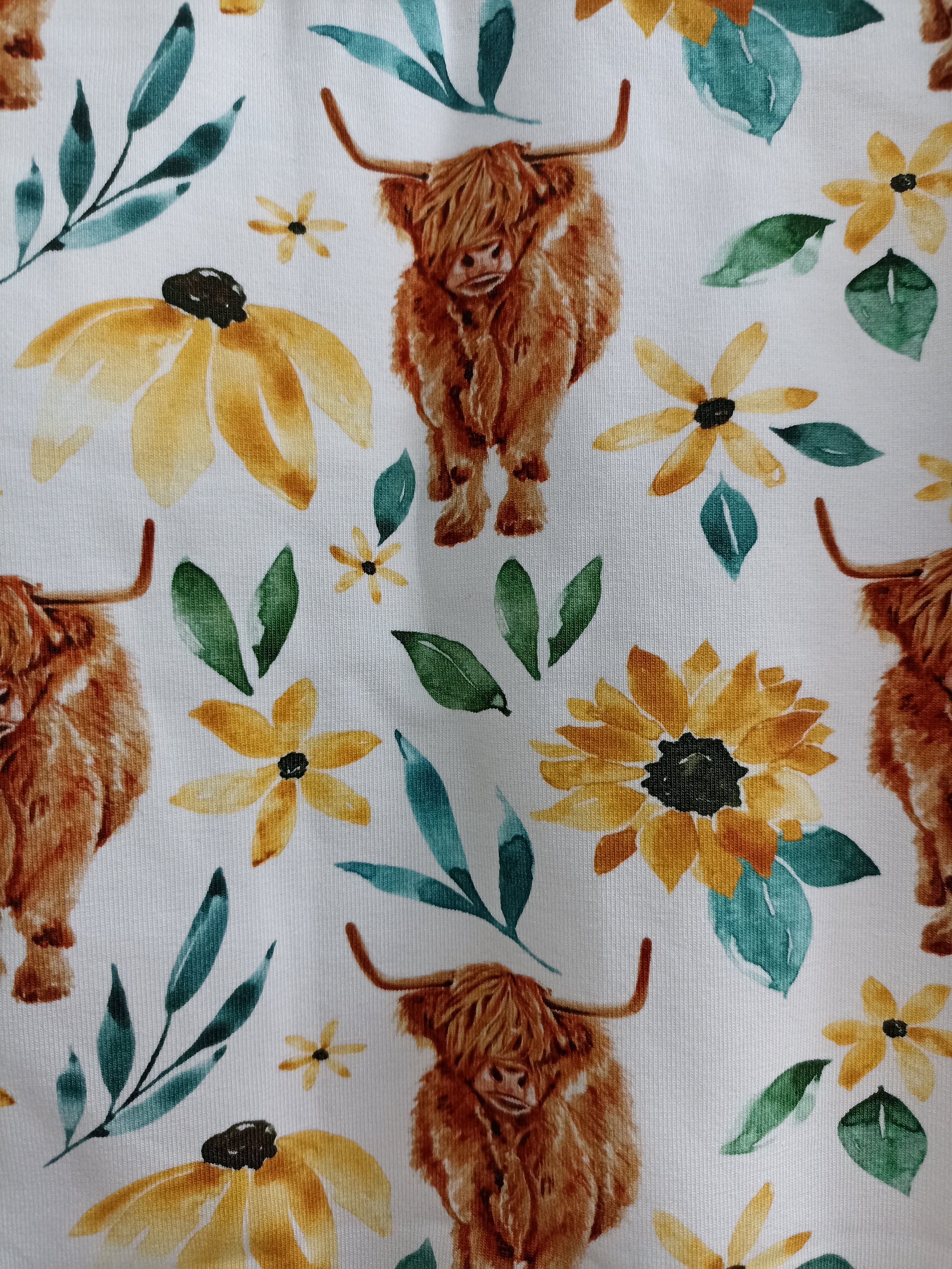 Romper suit - Highland Cows & yellow flowers (18-24 months)