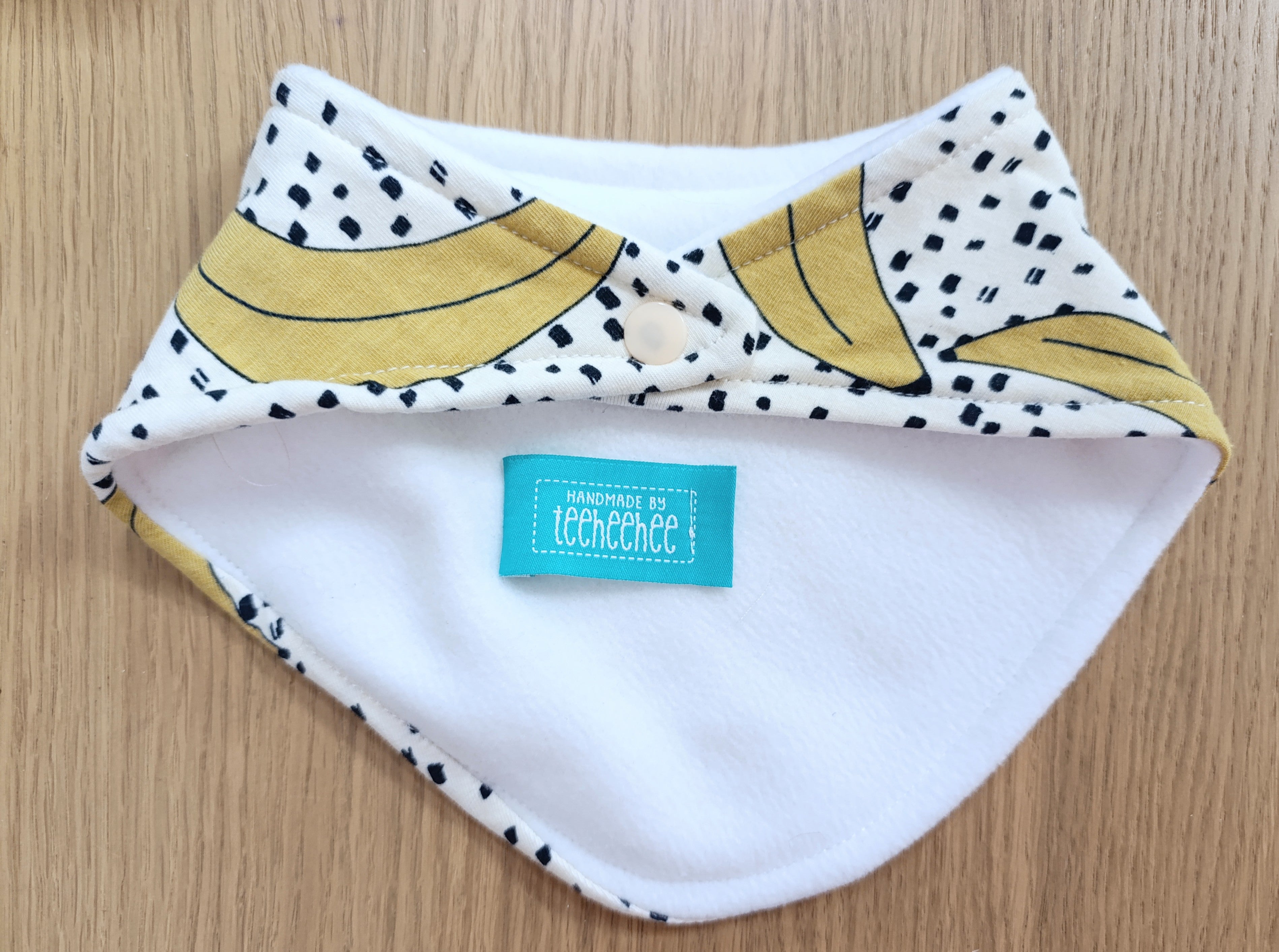 The bibs are all handmade by Vic of Handmade by TeeHeeHee at her home in Glasgow, Scotland.