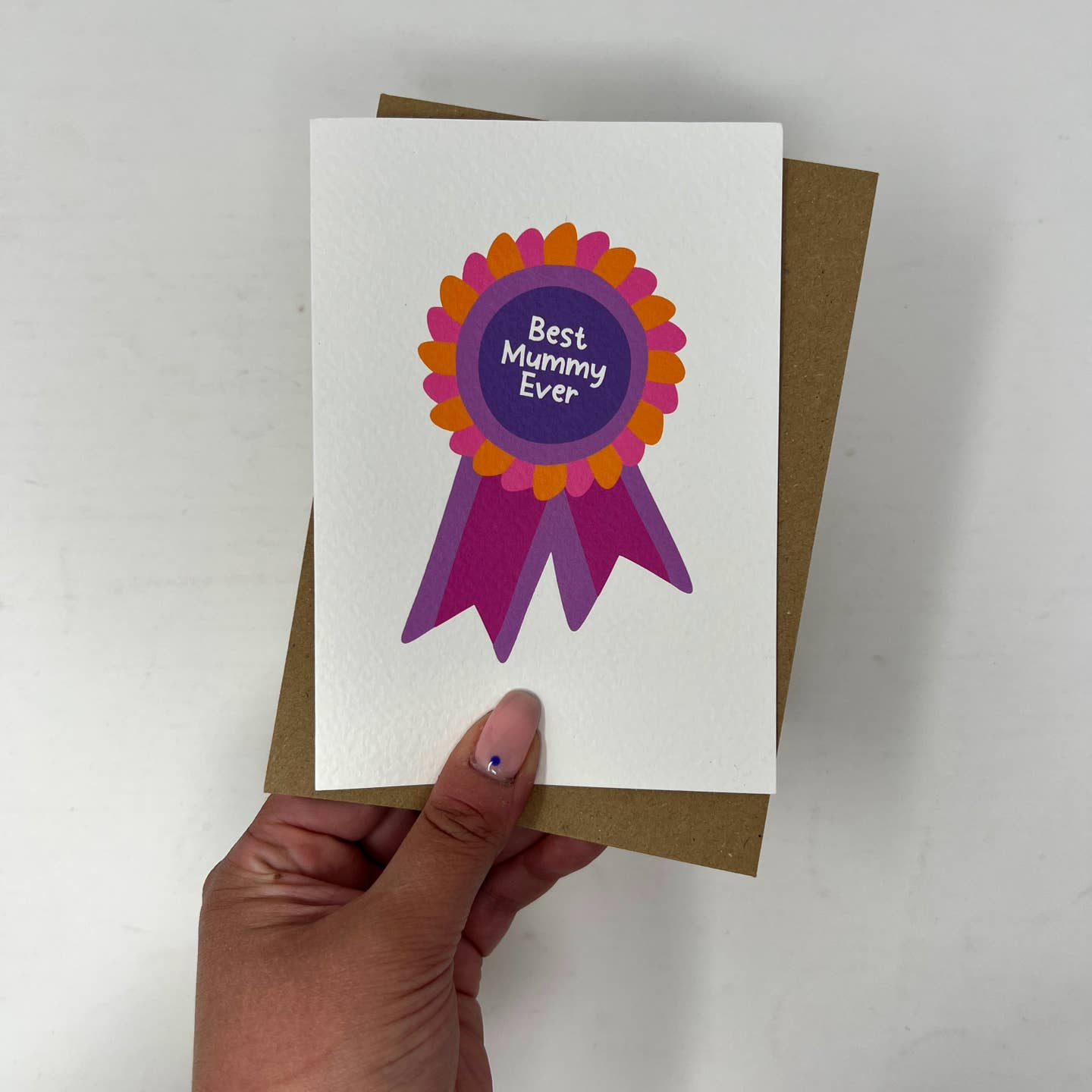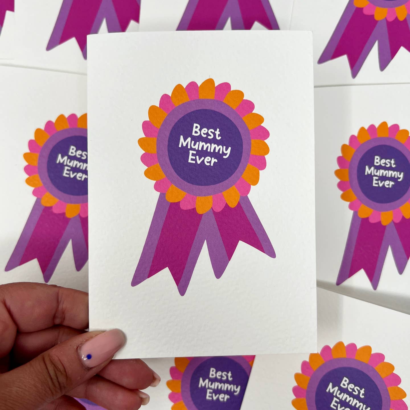 A bright “Best Mummy Ever” card featuring a colourful rosette design.