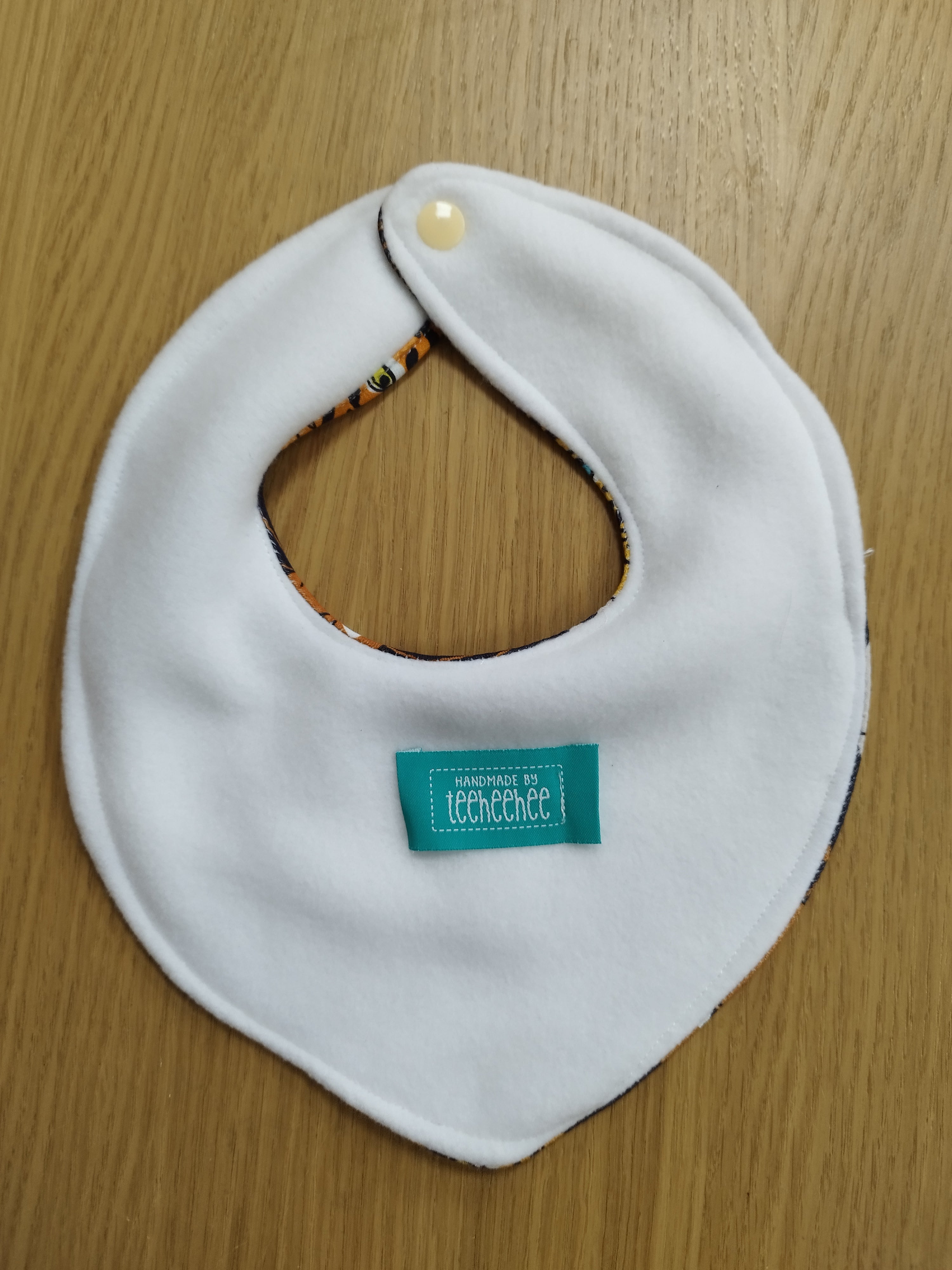 The bibs are all handmade by Vic of Handmade by TeeHeeHee at her home in Glasgow, Scotland.