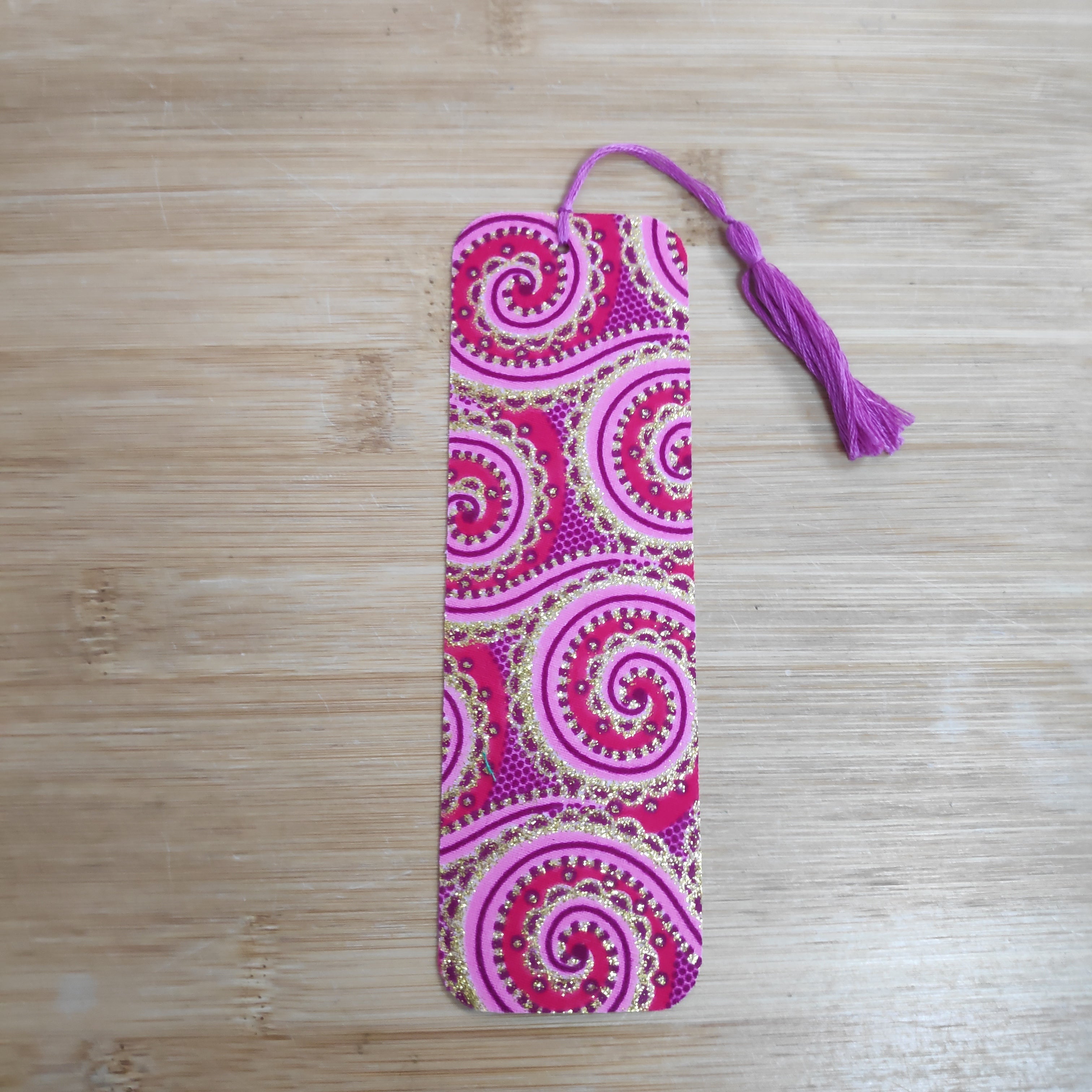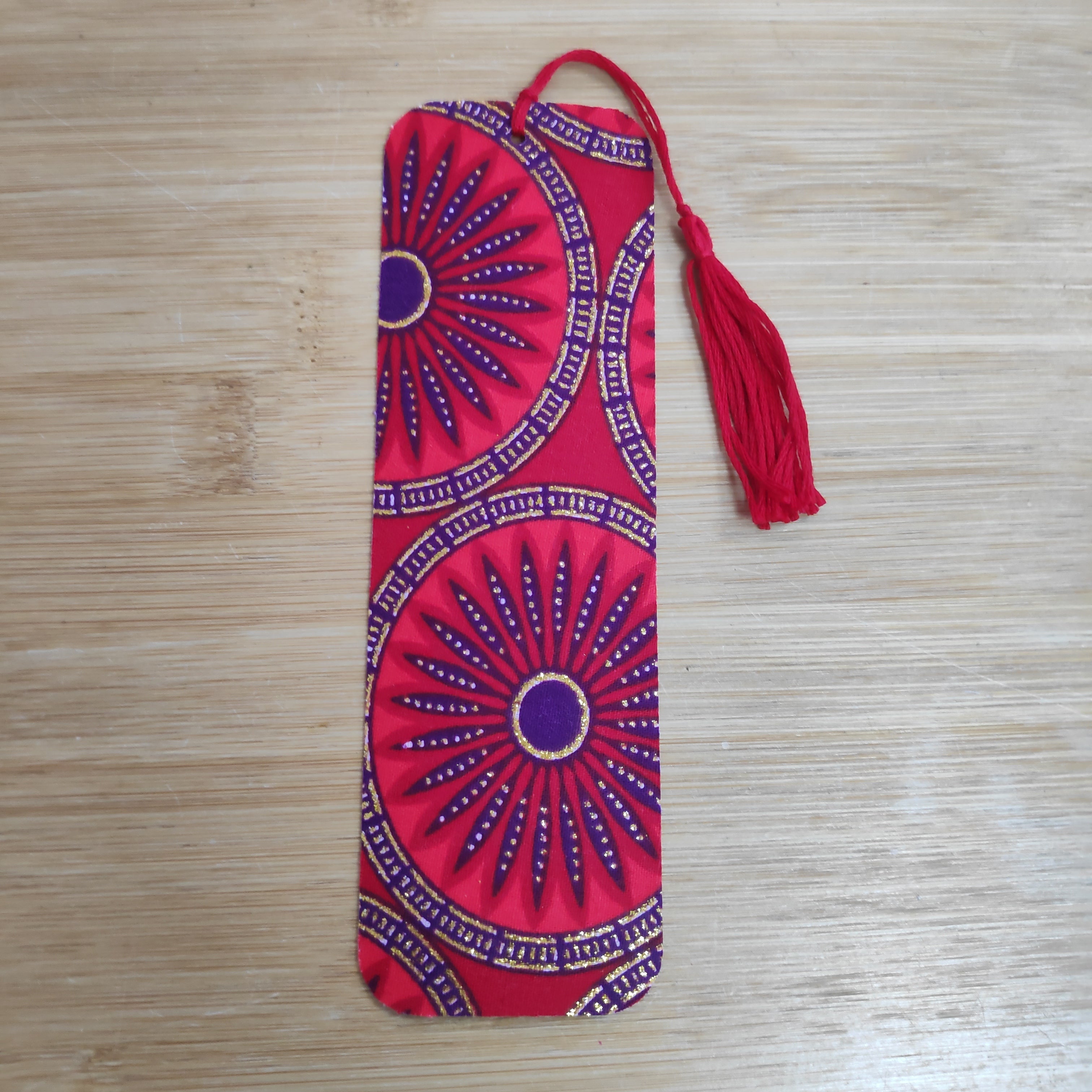 Beautiful bookmarks made from fabric offcuts and recycled threads.