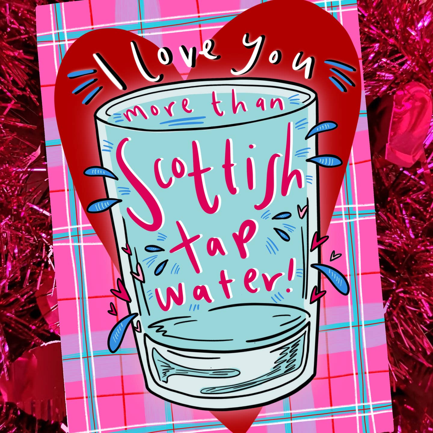 Scottish love, anniversary or Valentines card celebrating the elixir that is Scottish tap water!
