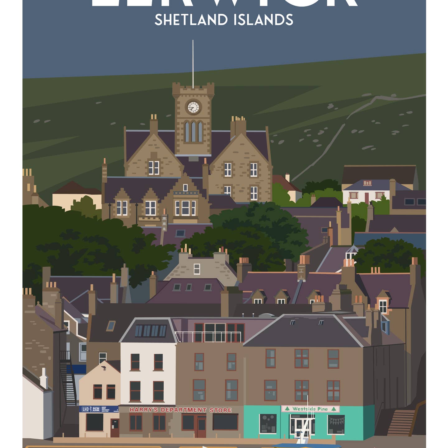 Lerwick Shetland islands A4 travel poster print