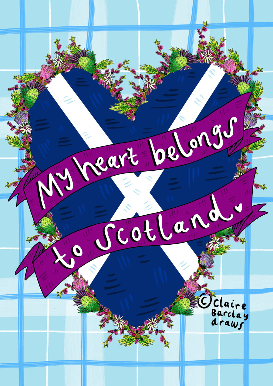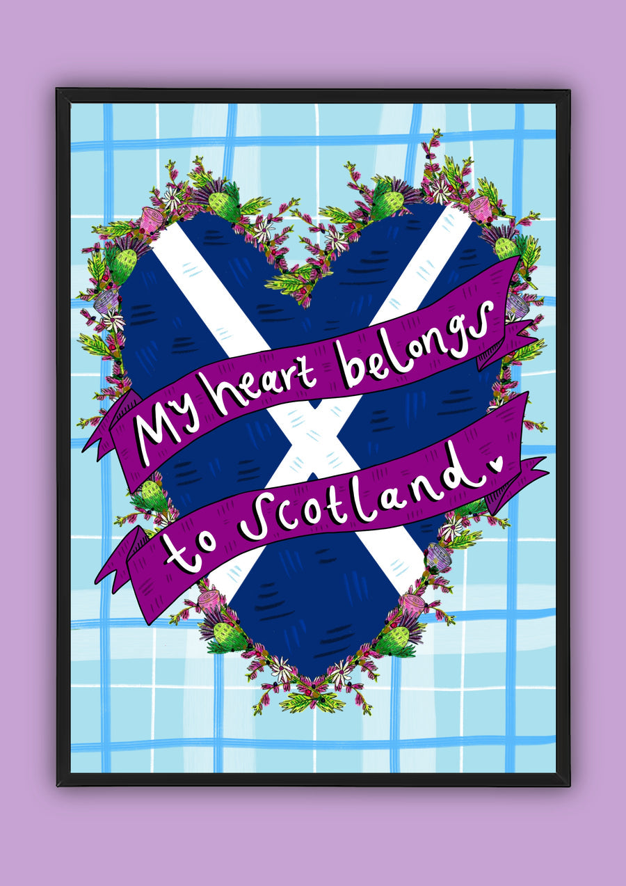 My heart belongs to Scotland! illustration print, perfect for anyone who has a special place in their heart for Caledonia!