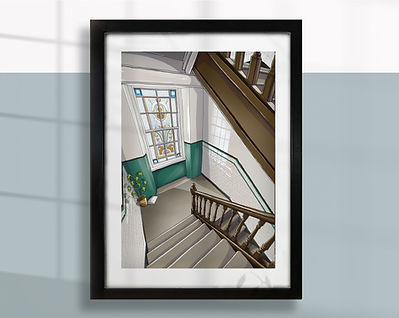 A4 print of a Tenement close from local artist, Julie of Turadh Design Co.